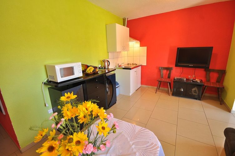 Posiadamy dwa apartamenty dla 4 osób i apartament 6-osobowy, wszystkie z niezależnymi wejściami. Każdy apartament posiada własny aneks kuchenny (w pełni wyposażony + mikrofalówka), łazienkę i TV-SAT, z ogrzewaniem podłogowym.