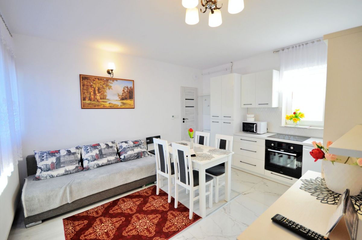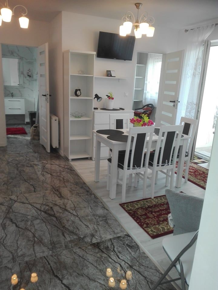 Byłam z mężem i pieskiem i było super. Bardzo przyjazny apartament, przestronny, przytulny, czysty i zadbany oraz pachnący. Wszelkie wygody i pełne wyposażenie. W kuchni można zrządzać np. ryby. Położenie z dala od zgiełku a jednocześnie blisko do plaży - 12 minut, niedaleko do marketu. Piękna trasa rowerowa wzdłuż wybrzeża oraz deptaka. A wisienką na torcie są Właściciele obiektu - pozytywnie nastawieni do gości, przemili i niesamowicie sympatyczni. Co mogli i byli w stanie załatwić - załatwili. Często jeździmy na wczasy w różne miejsca - za granicę też- ale nigdzie nie czuliśmy się tak zaopiekowani jak tutaj, gdzie naprawdę dbano o nasz komfort pod wieloma względami. Apartament godny polecenia. Wyjechaliśmy wypoczęci i zrelaksowani. Daję 10 punktów. W tym apartamencie byłam pierwszy raz, za to na pewno nie ostatni