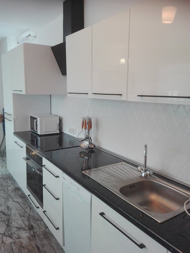 Na wyposażeniu kuchni znajduje się mikrofala, czajnik bezprzewodowy, płyta indukcyjna, piekarnik, duża lodówka, zmywarka, sztućce, talerze, garnki i cały zestaw do gotowania i przyrządzania posiłków. Ekspresy przelewowe do zaparzania kawy lub herbaty