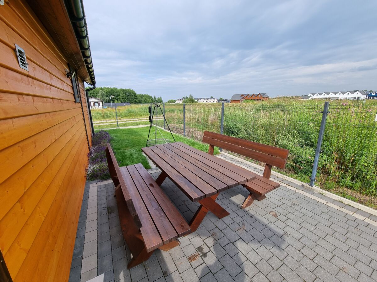 W każdym domku znajdziecie Państwo dwie sypialnie – w tym jedną z małżeńskim łóżkiem oraz drugą z piętrowym łóżkiem (miejsce do spania dla jednej osoby na górnym poziomie oraz podwójne łóżko na dole), salon z aneksem kuchennym oraz łazienkę z prysznicem i wc. Każdy z naszych domków przyjmie po 4 osób z możliwością dostawki za dodatkową opłatą dla dwóch osób. Kuchnia posiada wszystkie niezbędne urządzenia i naczynia. W salonie znajduje się telewizor, rozkładany wypoczynek z funkcją spania, stolik kawowy oraz stół pozwalający na wspólne spożywanie posiłków. Zwolennicy spędzania każdej wolnej chwili na świeżym powietrzu mogą korzystać z wygodnych ław stołowych znajdujących się na tarasie. W domkach dostępne są również trzy leżaki oraz parawan.