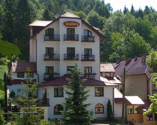 Kompeks Wypoczynkowy AMPHORA w Krynicy-Zdroju oferuje 70 miejsc noclegowych w pokojach 1-, 2-, 3-, 4-osobowych i apartamentach, nowocześnie urządzonych, z łazienkami (z prysznicem), wyposażonych w TV, dostęp do internetu, czajnik elektryczny.