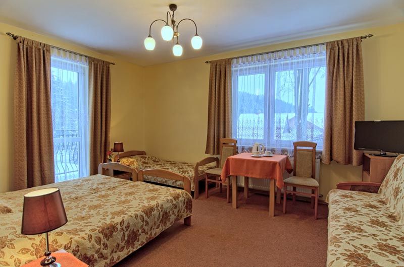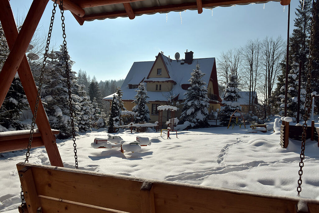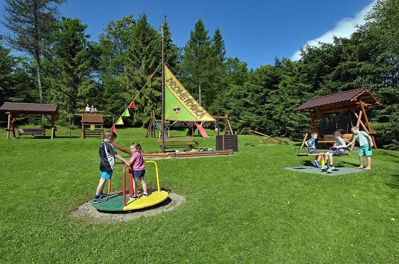 Oferujemy gościom pokoje z łazienkami, smaczną, domową kuchnię (całodzienne wyżywienie), dostęp do sieci Wi-Fi, TVsat, duży bezpłatny parking. Lokalizacja i otoczenie jakie posiada nasz Ośrodek Wypoczynkowy stwarzają doskonałe warunki do wypoczynku i rekreacji: duży plac zabaw dla dzieci, wiata grillowa, szałas ogniskowy, mini boisko do piłki siatkowej i koszykowej, ogród ze stolikami i parasolami, pobliski lasek ze strumykiem, basen rozporowy dla dzieci ogrodzony itp. Zimą posiadamy Narciarnię zewnętrzną przy parkingu.