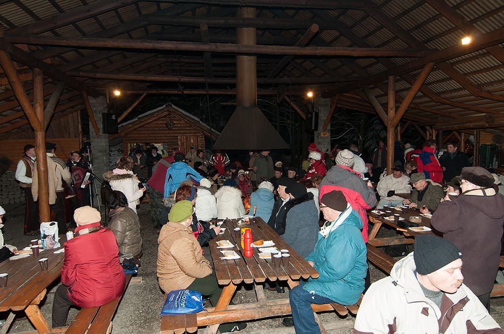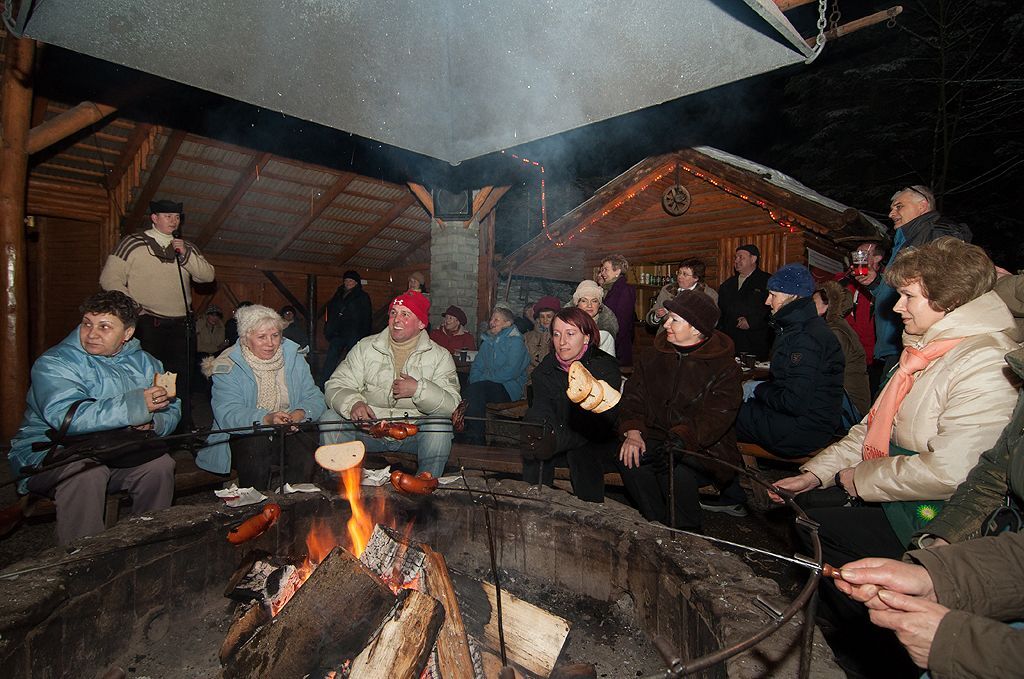 PRZEDsylwestrowa Biesiada przy ognisku w dniu 29 lub 30 grudzień w zadaszonym i oświetlonym Szałasie ogniskowym z pieczeniem kiełbasek i zabawą przy biesiadnej muzyce (menu: kiełbaska, oscypek, piwo lub wino).