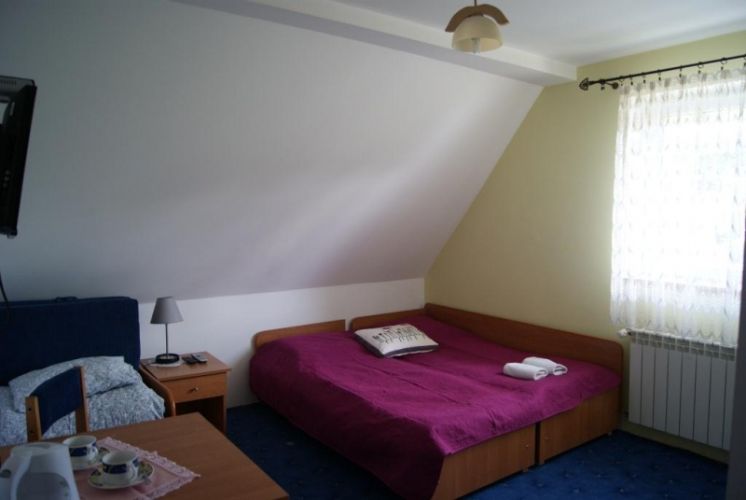 W naszej ofercie posiadamy pokoje 2-, 3- i 4-osobowe (rodzinne - studio) z łazienkami. Łącznie dysponujmey 42 miejscami noclegowymi. W każdym pokoju znajduje się telewizor, czajnik, filizanki, ręczniki, dostęp do internetu Wi-Fi.