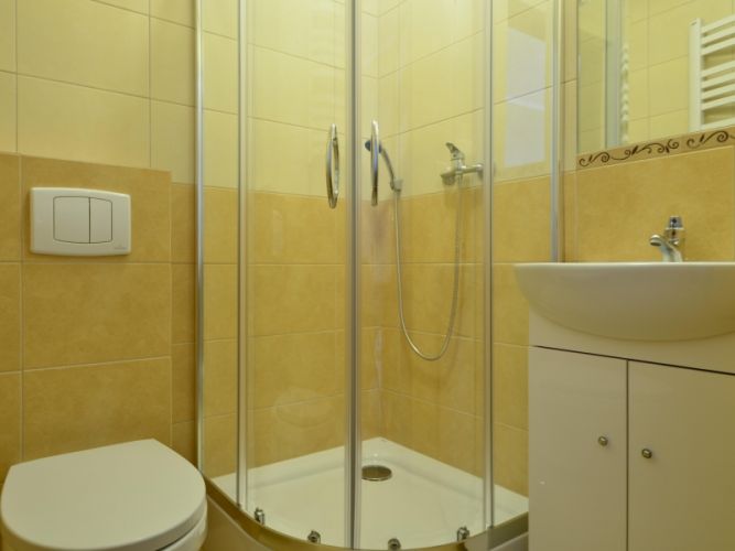 W każdym pokoju znajduje się łazienka, telewizor LCD, balkon, czajnik, kubki, naczynia, ręczniki, dostęp do Internetu WIFI
