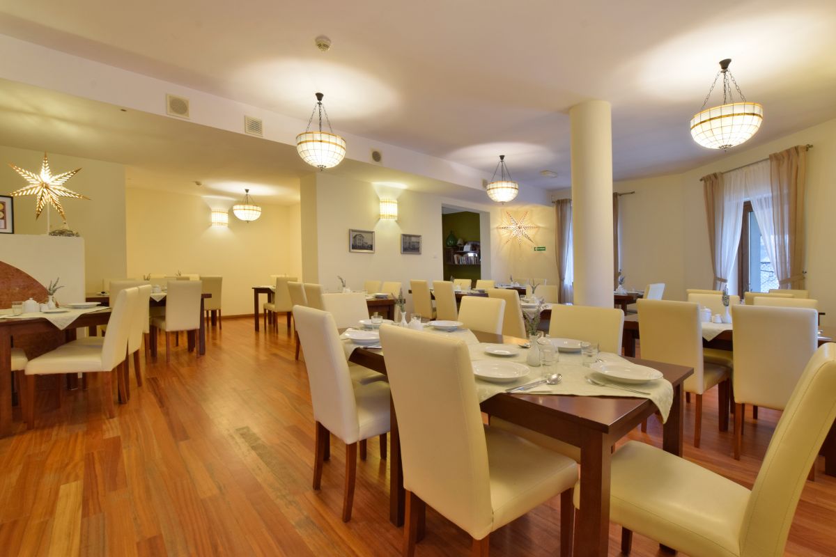 Ośrodek posiada własną stylową salę restauracyjną, w której serwujemy domowe posiłki: śniadanie w formie bufetu szwedzkiego oraz obiadokolacje.