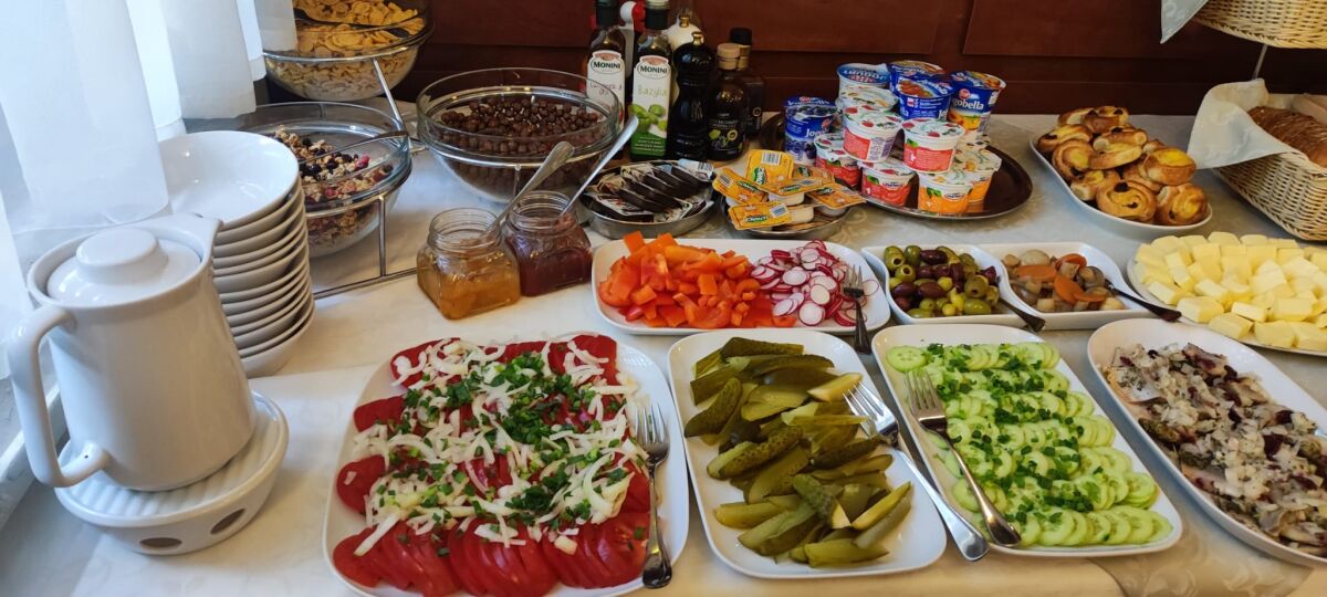 śniadania w formie szwedzkiego stołu, obiadokolacje serwowane do stolika