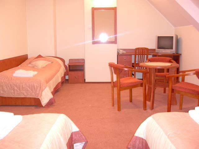 W naszej ofercie posiadamy pokoje 2, 3, 4 osobowe i apartamenty dwupokojowe. Każdy z nich o wysokim standardzie - wyposażony w łazienkę, przedpokój, TV, telefon. Posiadamy własną restaurację z eleganckim wystrojem i wyśmienitą kuchnią. Serdecznie zapraszamy!
