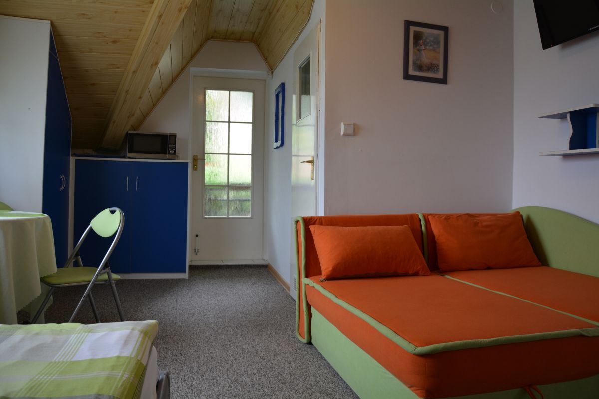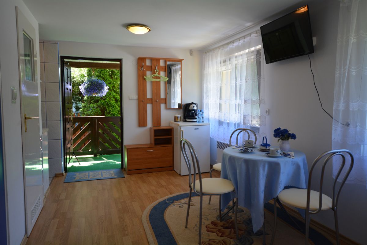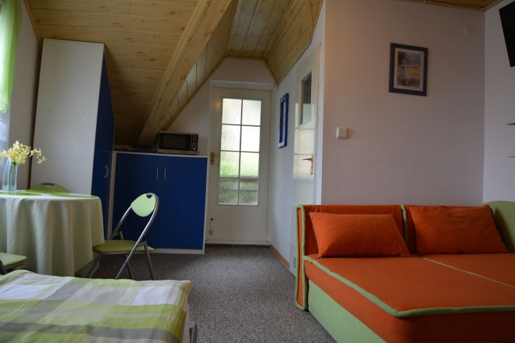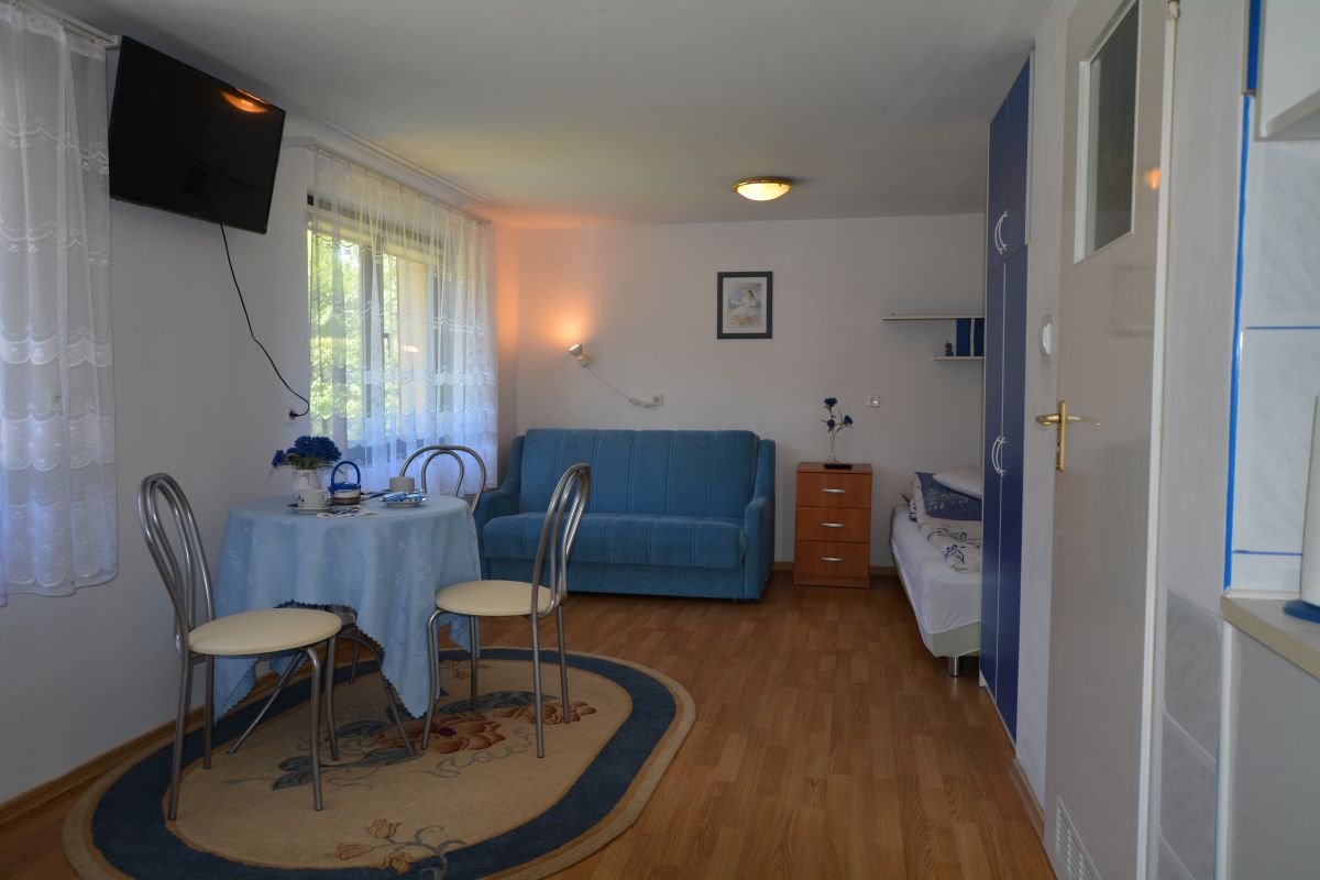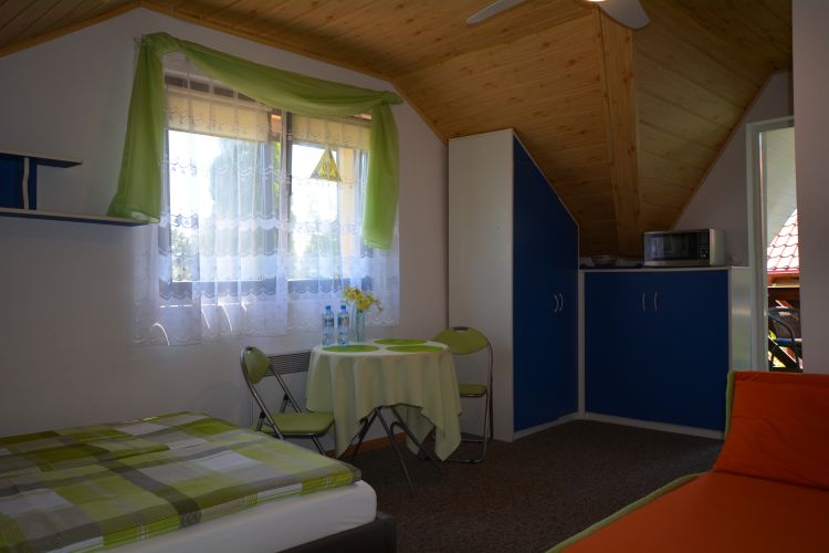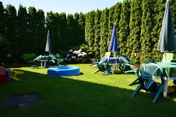 W pensjonacie znajdują się pokoje 2,3,4 osobowe. Pokoje są z balkonami i łazienkami; ktore posiadaja suszarki do wlosow i dozowniki plynu do kapieli i szamponu. Na wyposażeniu znajdują się: TV 32", lodówka, kuchenka mikrofalowa, czajnik, komplet naczyń oraz sprzęt plażowy. Do dyspozycji gości posiadamy również pokoje z aneksami kuchennymi i tarasem, które znajduja się na parterze z bezpośrednim wyjsciem do ogrodu. Pokoje z balkonami w celu schlodzenia pomieszczenia posiadaja wentylatory sufitowe z pilotem.Teren jest wygrodzony, podświetlany lampionami, na którym znajdują się stoły z parasolami, piaskownicą, bujawkami i trampoliną dla dzieci. Dla dorosłych jest huśtawka, grill oraz leżaki. Na miejscu można wypożyczyć rowery górskie. Posiadamy również łącze internetowe, dostępne na terenie całego obiektu. Dla miłośników wędkarstwa znajduja się stanowiska lowieckie w odległości 30m od naszego obiektu. Gwarantujemy wypoczynek w ciszy i spokoju. Ceny w zależności od terminu.