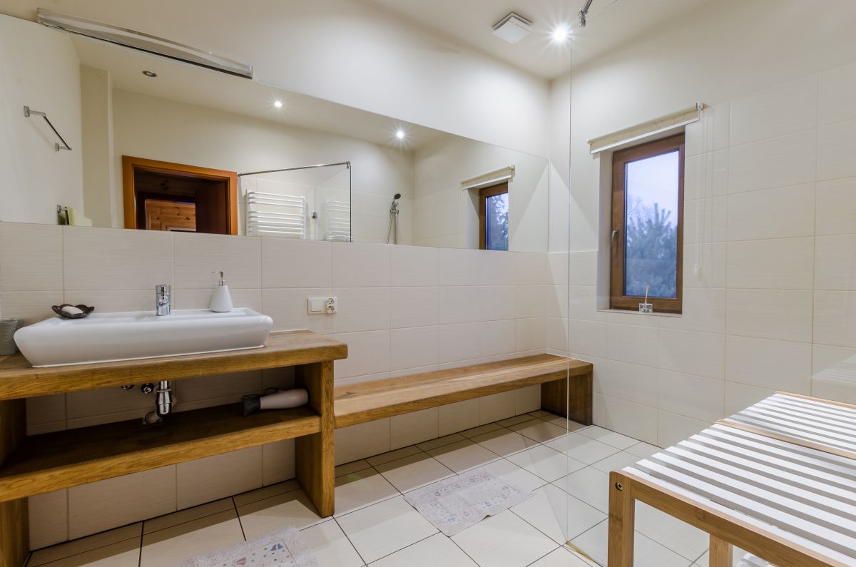 Dom jest ogrzewany wydajnym kominkiem i pompą ciepła, także jest dostępny przez cały rok od 300zł za dobę. Na miejscu dostępny jest szybki internet i miejsce odpowiednie do pracy typu Home Office w atmosferze wolnej od smogu.