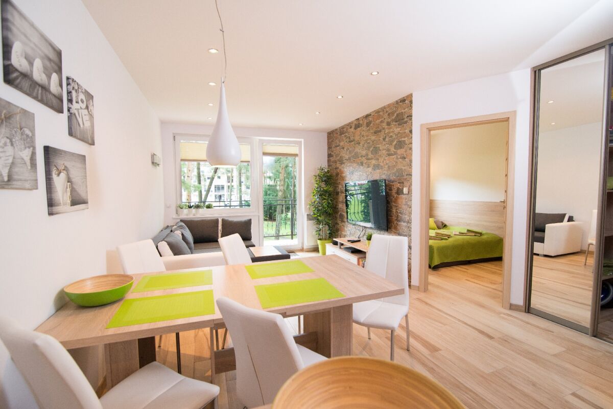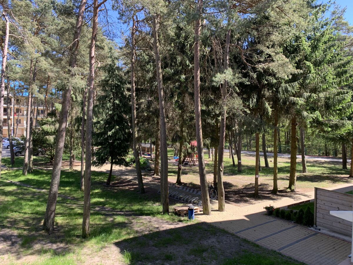 Piękny kompleks apartamentów (dwa budynki) na ogrodzonej, zadrzewionej 2 hektarowej działce. Ta przestrzeń pozwala na swobodny wypoczynek i relaks nad basenem, na leżakach, na hamakach. Można również spędzać czas aktywnie. Do dyspozycji jest boisko do siatkówki, siłownia "pod chmurką". Są wyznaczone i wyposażone miejsca na ognisko i grill. Obowiązuje cisza nocna od godziny 22.