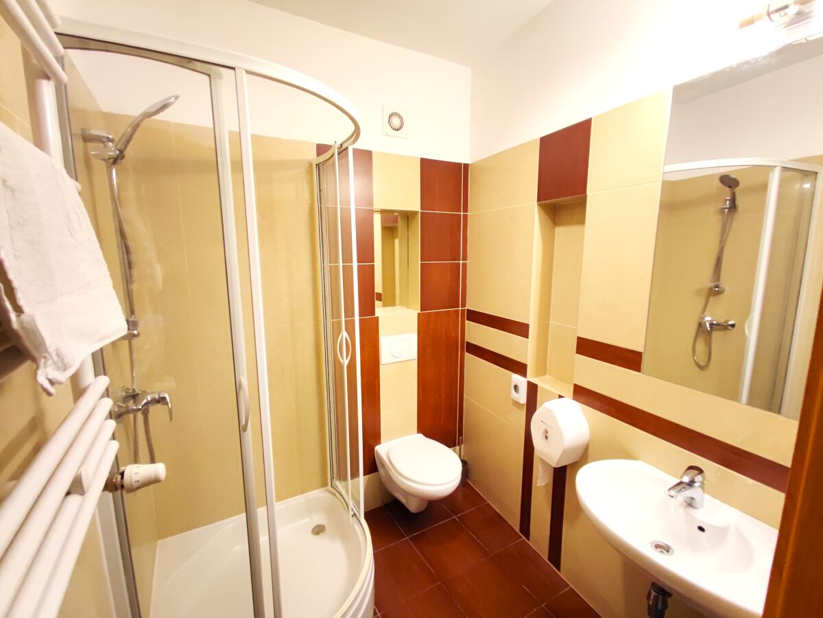 Wszystkie pokoje z balkonem, z toaletą z kabiną prysznicową, lodówką, TV oraz z dostepem do internetu przez Wi-Fi.