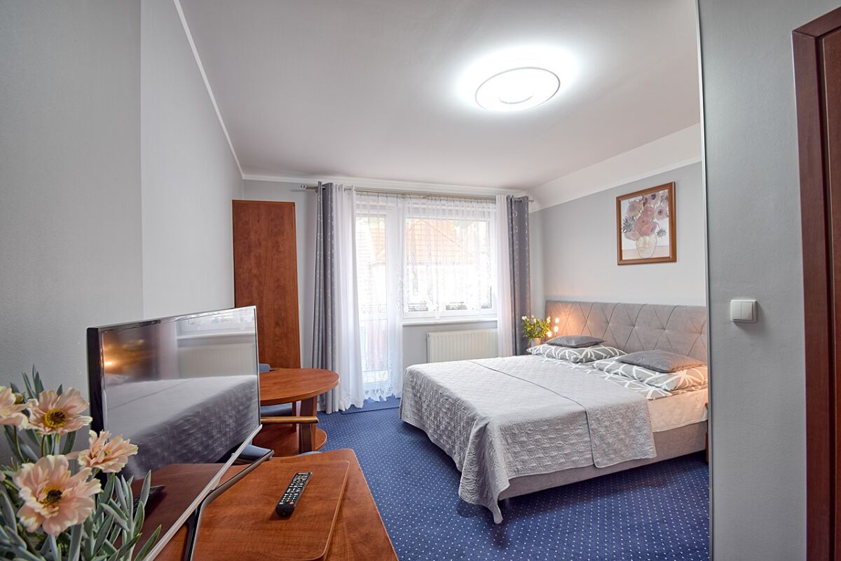 Komfortowe 2 i 3 osobowe pokoje o standardzie hotelowym nowocześnie umeblowane i wyposażone. Każdy pokój posiada łazienkę z kabiną prysznicową zaopatrzoną w ręczniki (na życzenie), mydełka oraz sprzęt czystościowy, Internet, balkon z kompletem mebli wypoczynkowych.