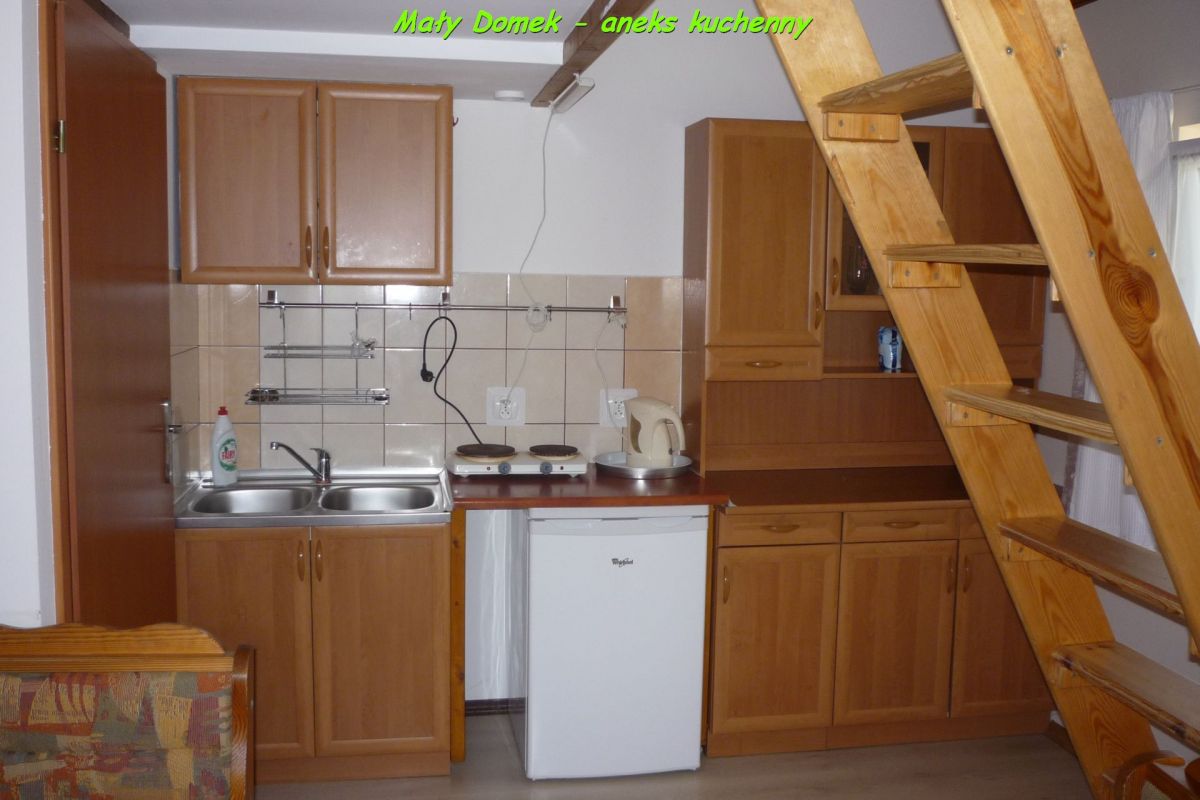 - o aneks kuchenny (lodówka z zamrażalnikiem, kuchenka elektryczna, czajnik elektryczny, stół z krzesłami, pełne wyposażenie kuchenno-stołowe (garnki, naczynia, sztućce, itp.)