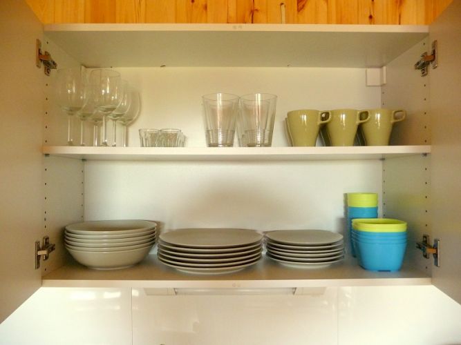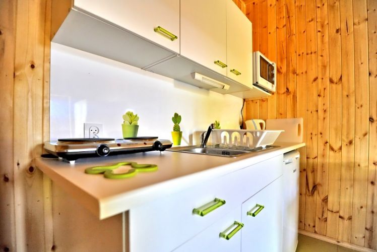 3. Aneks kuchenny: komplet szafek kuchennych, zlewozmywak, lodówkę z zamrażalnikiem, kuchenkę elektryczną, kuchenkę mikrofalową, czajnik elektryczny, komplet naczyń i sztućców, dodatkowe naczynia dla dzieci, komplet garnków.
