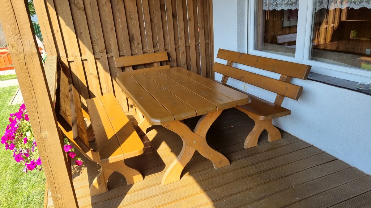 Przestronny i całkowicie zadaszony taras zapewni Państwu przyjemny cień, po powrocie z plaży, a w czasie deszczu pozwoli w komfortowych warunkach spędzać czas z najbliższymi.