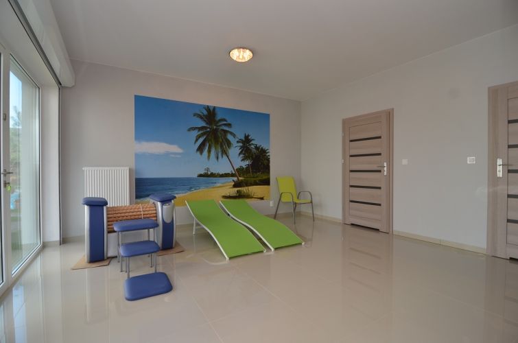 Odpłatnie oferujemy gościom saunę Deluxe Infrared na podczerwień, step, urządzenie rollen, orbitrek do ćwiczeń total sport, urządzenie Gravitone do masażu oraz mini basen z hydromasażem