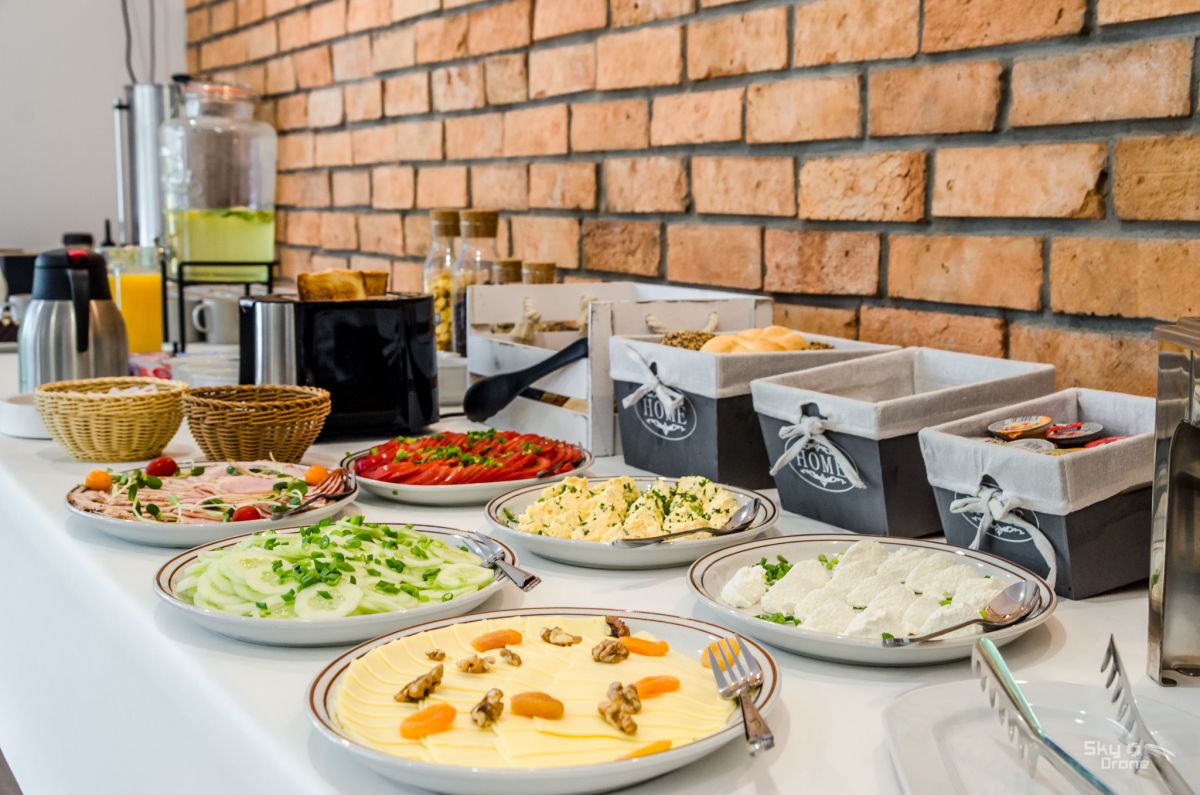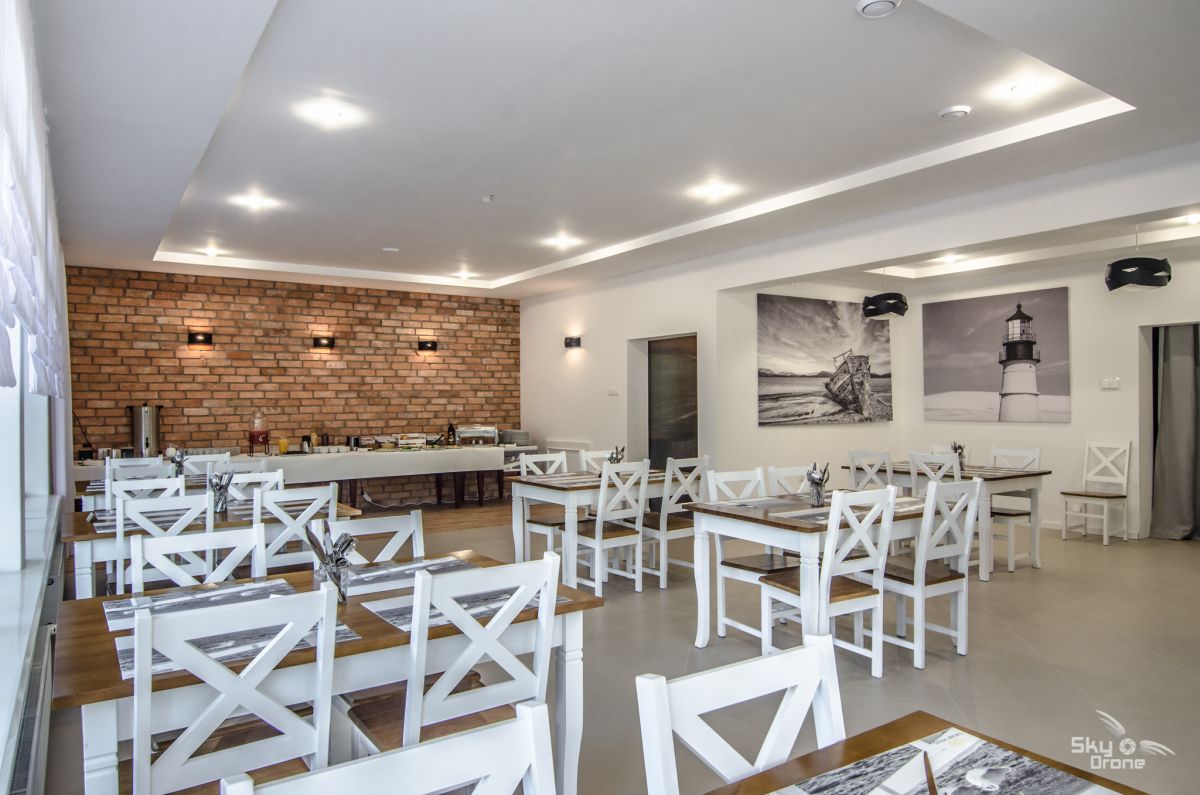 Na parterze znajduje się restauracja oferująca śniadania (bufet szwedzki) oraz pizzeria.