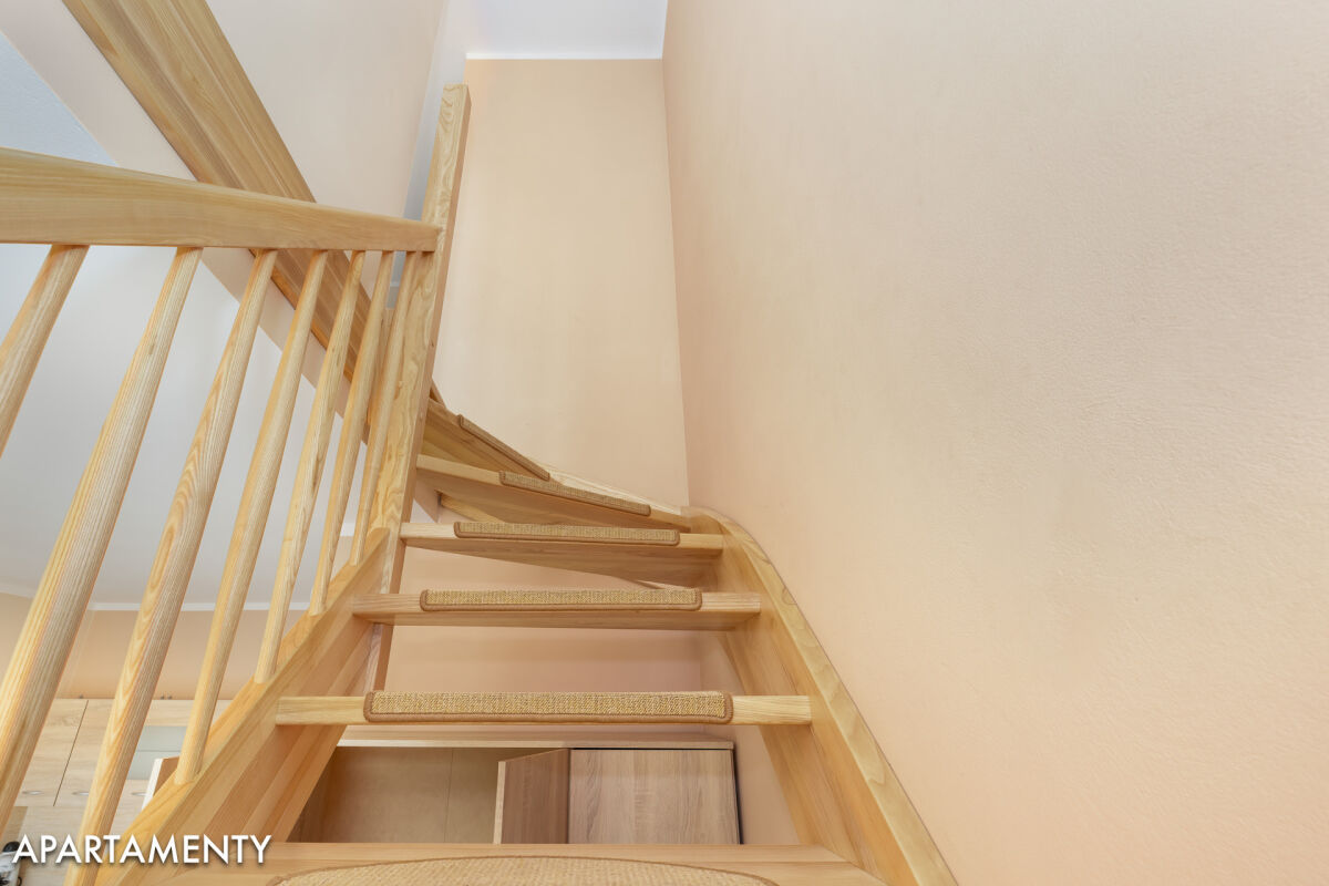 Apartamenty (przeznaczone dla 5 osób) składają się z salonu z telewizorem wraz z w pełni wyposażonym aneksem kuchennym , łazienkę z prysznicem. Z salonu drewniane schody prowadzą do dużej sypialni z łóżkami : małżeńskim i dwoma pojedynczymi. Z salonu wyjście na wygrodzony taras z ławostołem i grillem.