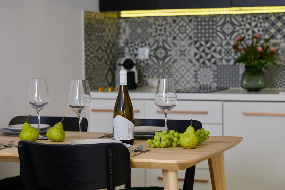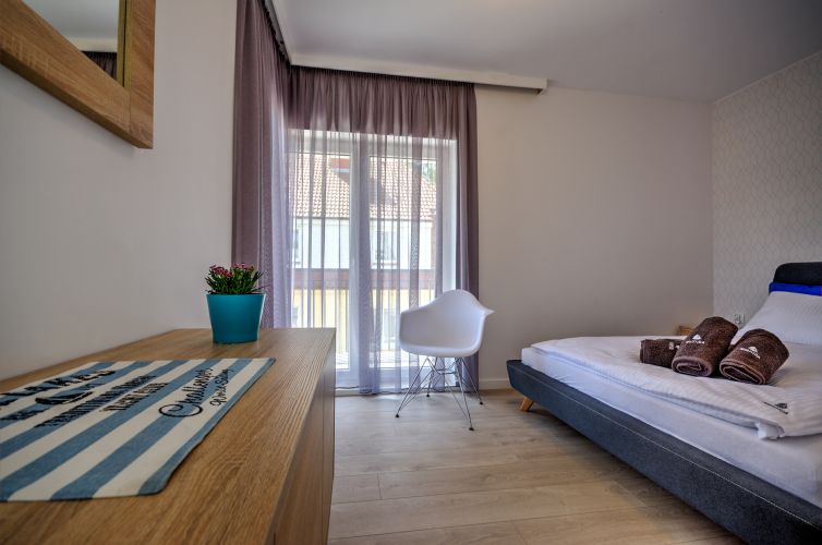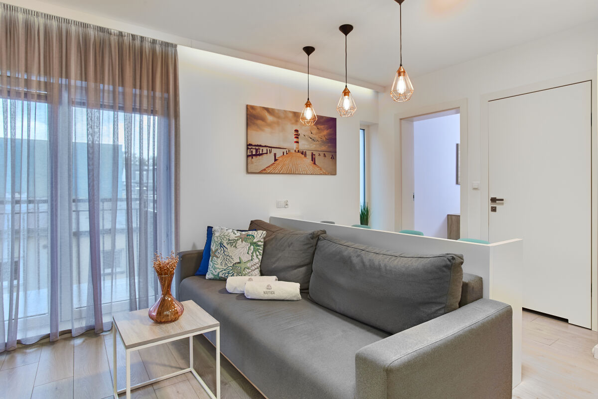 Apartamenty zostały zaprojektowane o wysokim standardzie. Użyliśmy materiałów bardzo dobrej jakości, aby każdy z Państwa czuł się u nas wyjątkowo i bezpiecznie. Każdy pokój posiada płaskie telewizory LED 43`, zabudowę kuchenną, lodówkę, czajnik bezprzewodowy, płytę elektryczną, sztućce i naczynia. Łazienka wyposażona jest w elegancką przeszkloną kabinę prysznicową. Apartamenty położone na parterze mają do dyspozycji prywatny ogród wyposażony w meble ogrodowe oraz grilla. W każdym apartamencie znajdą Państwo pościel oraz świeże ręczniki z naszym logiem. Dla Gości Nautica oferujemy 10% rabatu w restauracji Róża Wiatrów Niechorze.
