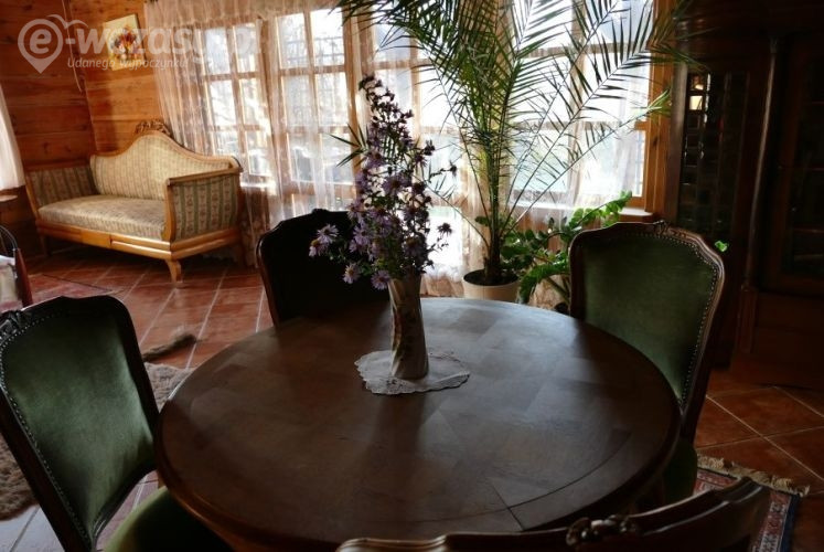 Dom jest w pełni wyposażony. Kuchnia i jadalnia wyposażona w pełną zastawę na 10 osób. W salonie kominek, TV i wszystko czego potrzeba do relaksu przy kominku. Teren ogrodzony, w ogrodzie jest miejsce do palenia ognisk, staw z liliami i wieczornymi koncertami żab. Grill i wygodne meble ogrodowe sprzyjają długim wieczornym rozmowom. Miejsce do parkowania bezpośrednio przy domu.