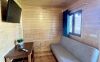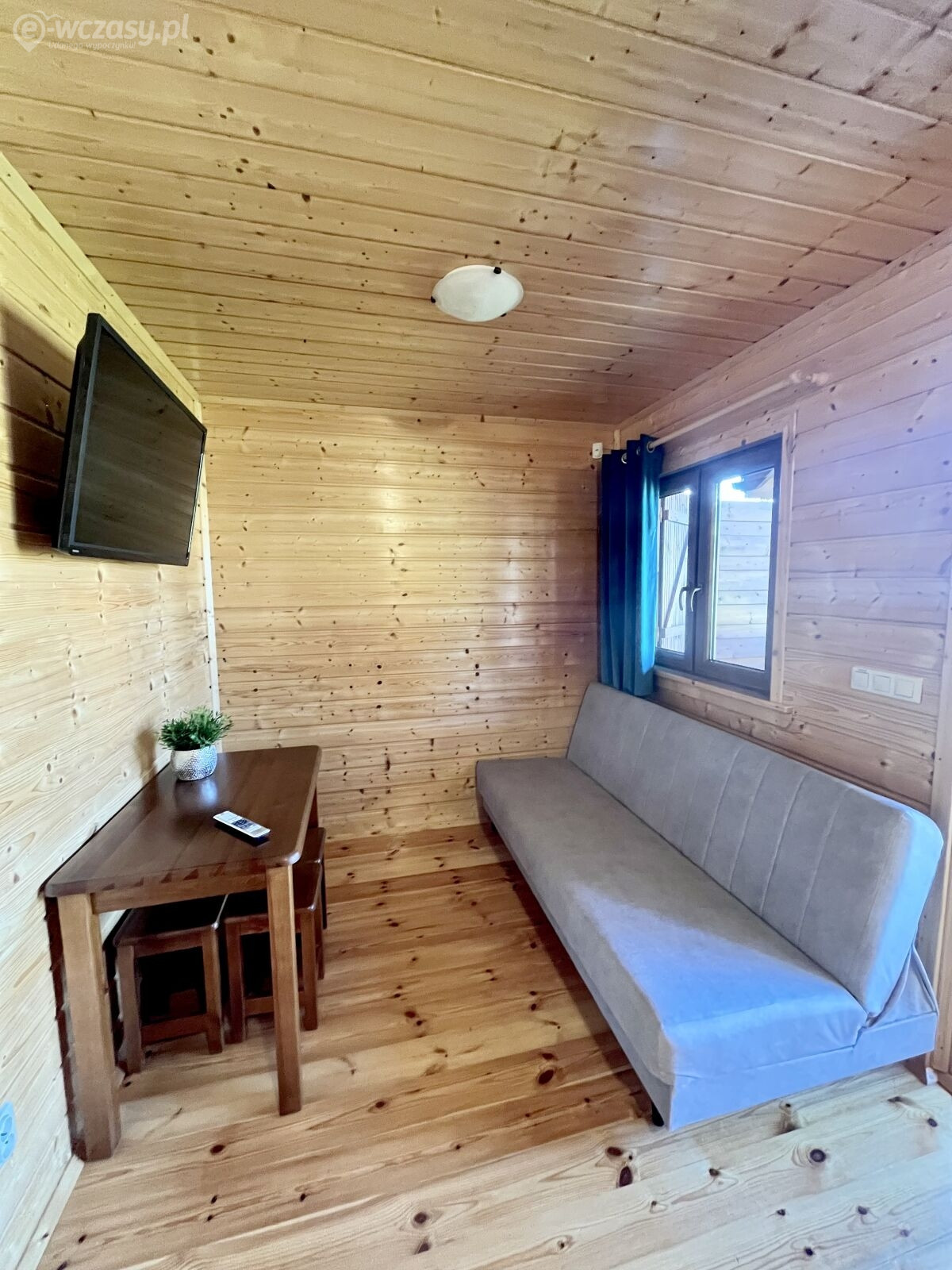 - Salon- wyposażony w 2-osobową kanapę, telewizor, stół + 5 taboretów.