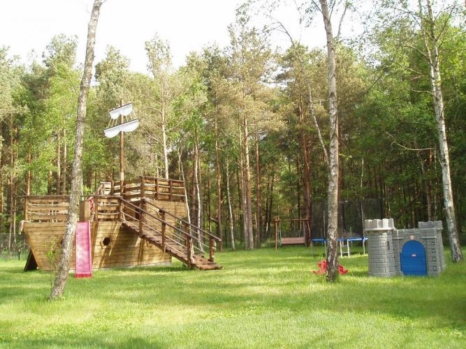 - pełen atrakcji duży plac zabaw dla dzieci 1300m2 położony na trawie w lasku zapewniającym cień a w nim m.in.: ...Wielki Statek Piracki o dł. 6.5m ze zjeżdżalnią, ścianką wspinaczkową i zadaszoną bawialnią na dolnym pokładzie - idealną na zabawę bez względu na pogodę oraz ogromny FIGLO RAJ kolorowy atestowany plac zabaw z torami przeszkód i zjeżdżalniami, Zamek Rycerski, huśtawka dla najmłodszych oraz dla starszych dzieci, zjeżdżalnie dla dzieci w różnym wieku, trampolina