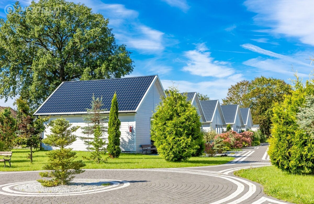 Oferowane przez nas domki składają się z salonu z częścią kuchenną, dwóch sypialni, łazienki oraz zadaszonego tarasu.