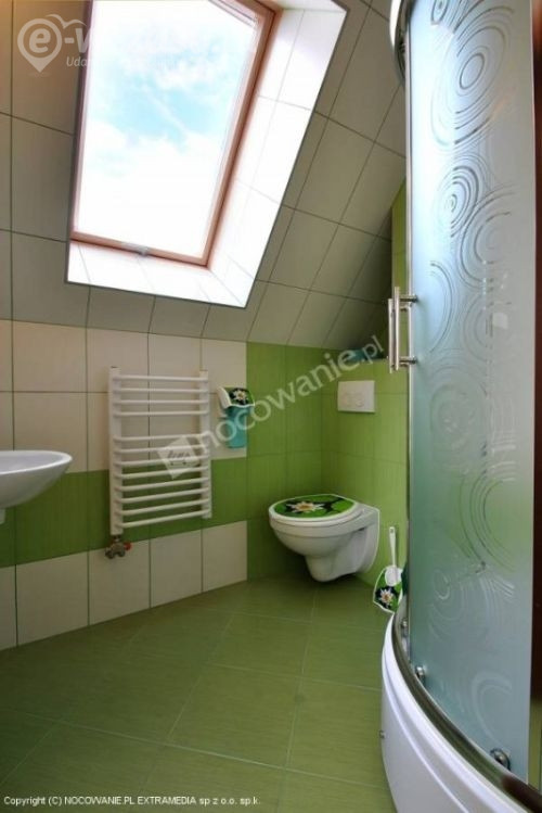 Posiadamy pokoje 2,3,4-osobowe z łazienkami i dostępem do WiFi oraz TV. Pokoje są duże i przytulne. Na korytarzu znajduje się aneks kuchenny a na dolnym piętrze znajduję się narciarnia, świetlica z TV i aneksem oraz kącik zabaw dla dzieci. Obok domu znajduje się bezpłatny parking.