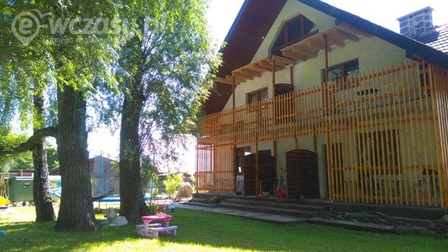 Na piętrze znajdziemy przestronną sypialnię z dwoma łóżkami małżeńskimi, szafą ubraniową, komodą oraz balkon.