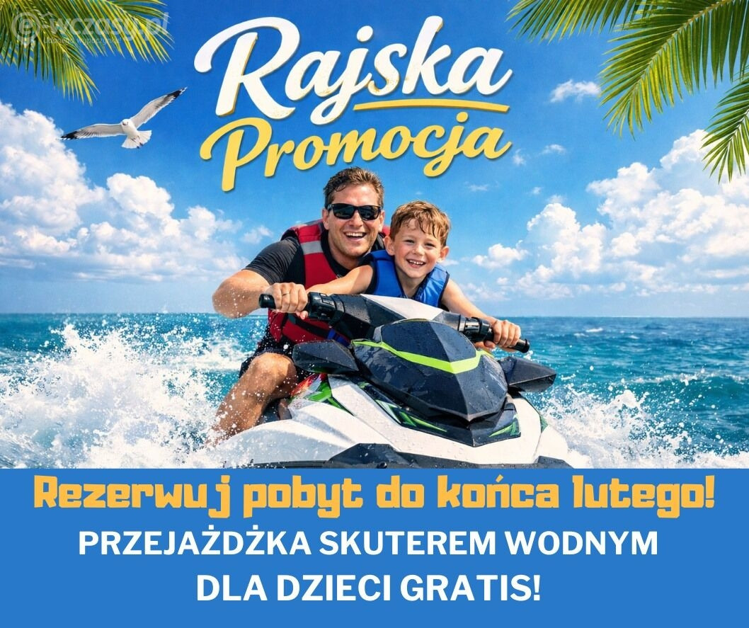 * * PROMOCJA!REZERWUJ WAKACJE 2026 DO KOŃCA LUTEGO I ZYSKAJ PRZEJAŻDŻKĘ SKUTEREM WODNYM DLA DZIECI GRATIS! * *