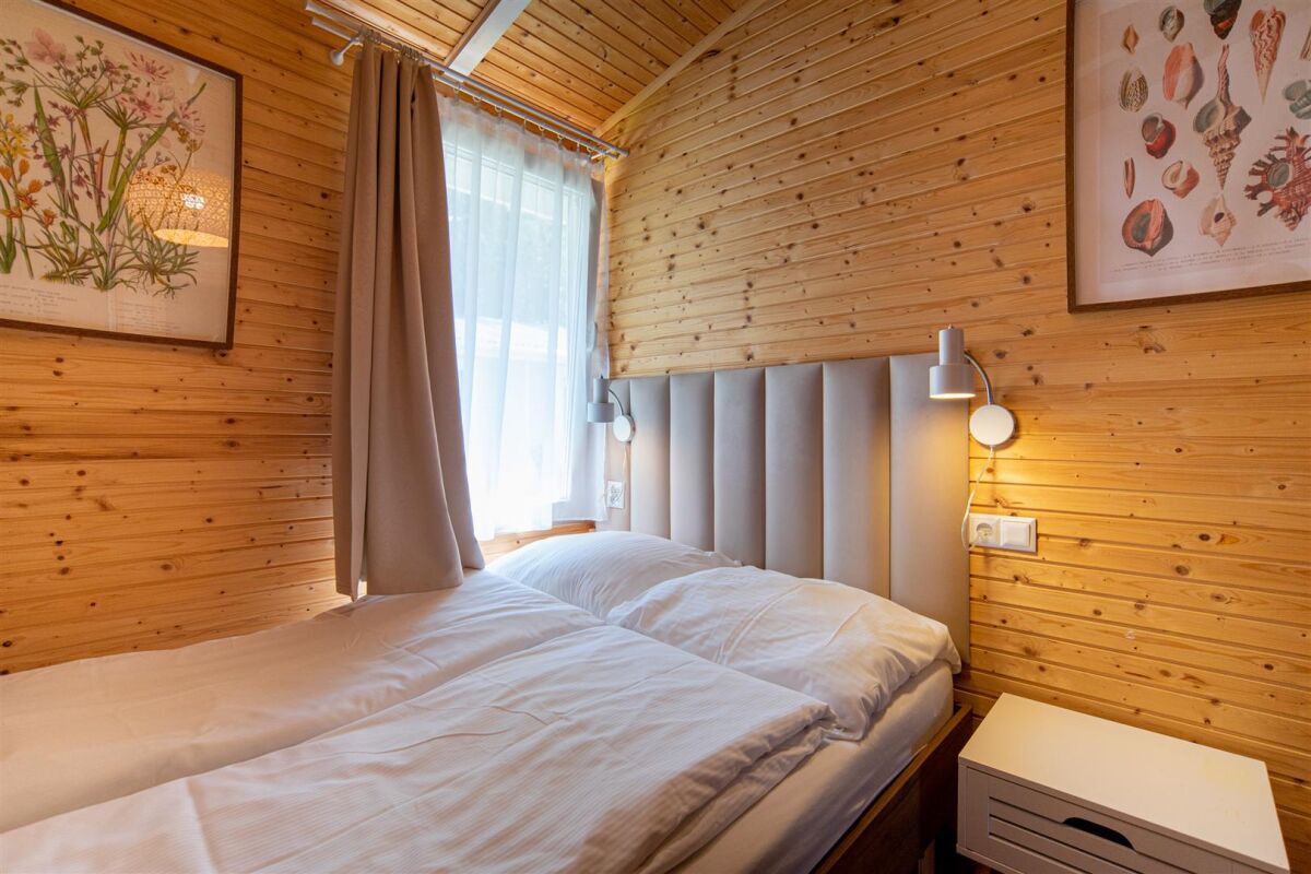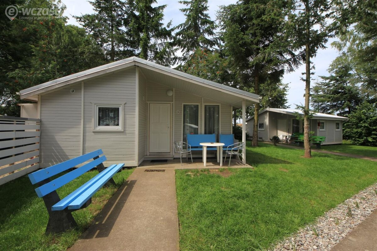A2 -> domki 2-pokojowe (do 5 osób) z wyposażonym aneksem kuchennym, łazienką, TV i WiFi. Przed domkiem znajduje się taras z meblami ogrodowymi.