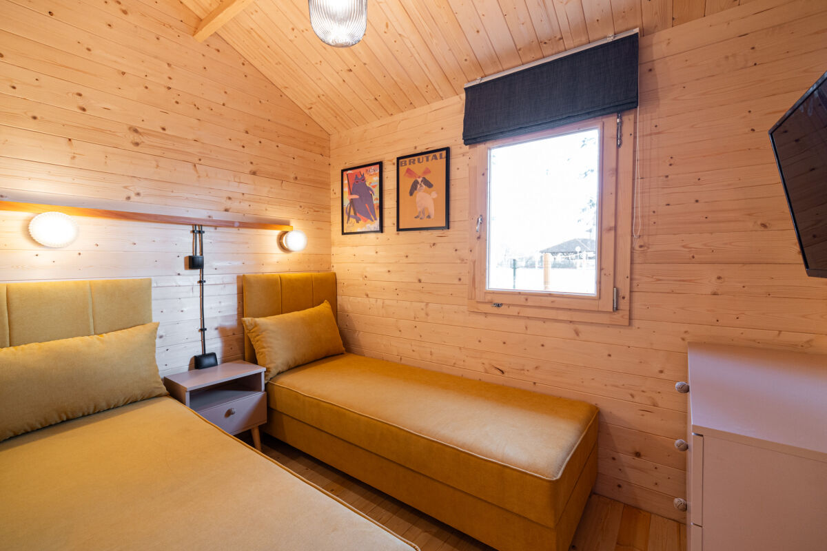 A3 –> (NOWOŚĆ - zdjęcia w styczniu) domki 3-pokojowe (do 5 osób) z wyposażonym aneksem kuchennym, łazienką, TV i WiFi, przed domkiem znajduje się taras z meblami ogrodowymi.