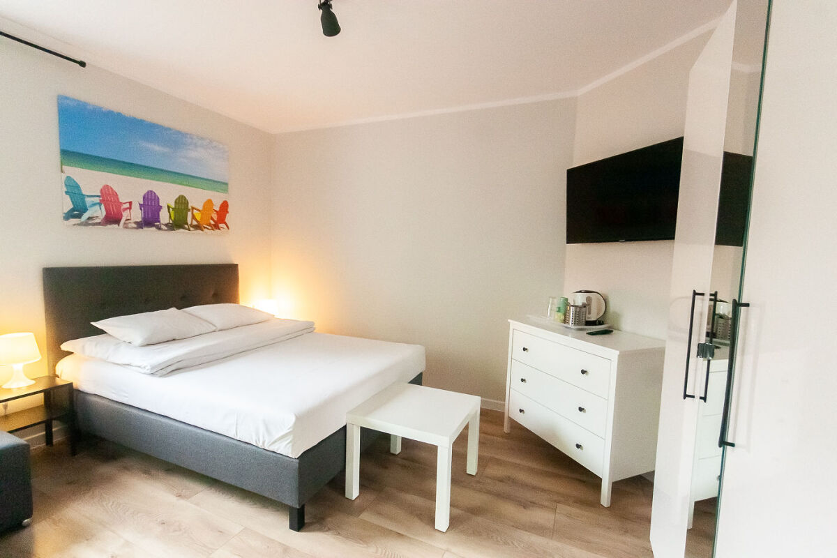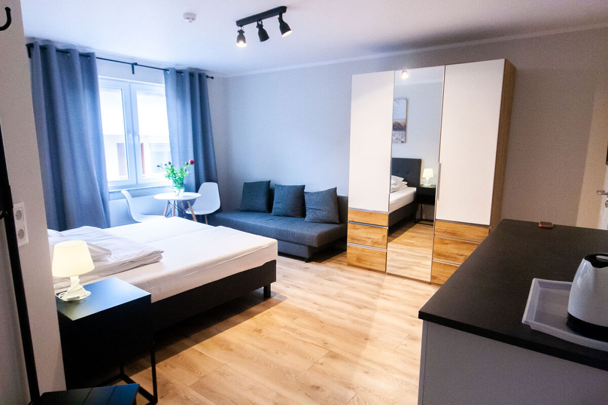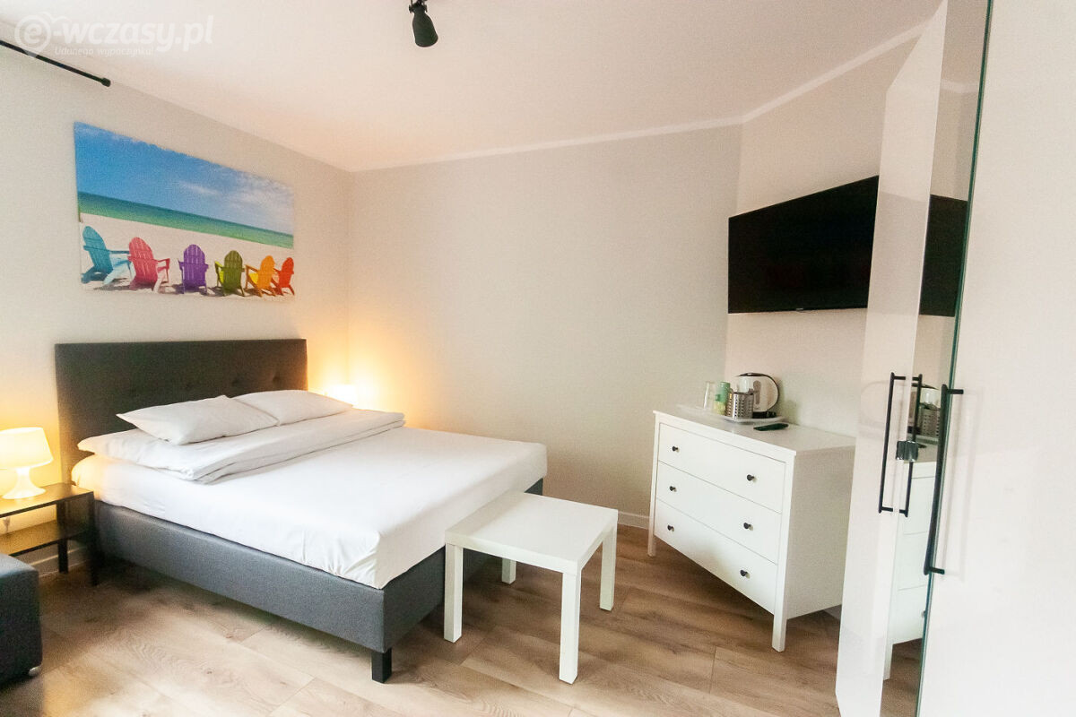 Apartament AP-01 - 4-8 osobowy i składa się z 3 pokoi i 2 łazienek, jeden pokój niezależny z łazienką, salon z aneksem kuchennym oraz sypialnia z łazienką. Salon i sypialnia są klimatyzowane. Apartament posiada ok. 8 miejsc do spania. W salonie znajduje się duży i wygodny narożnik.