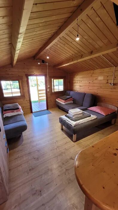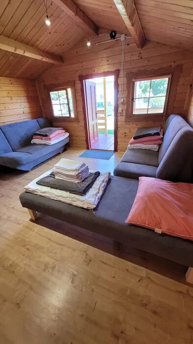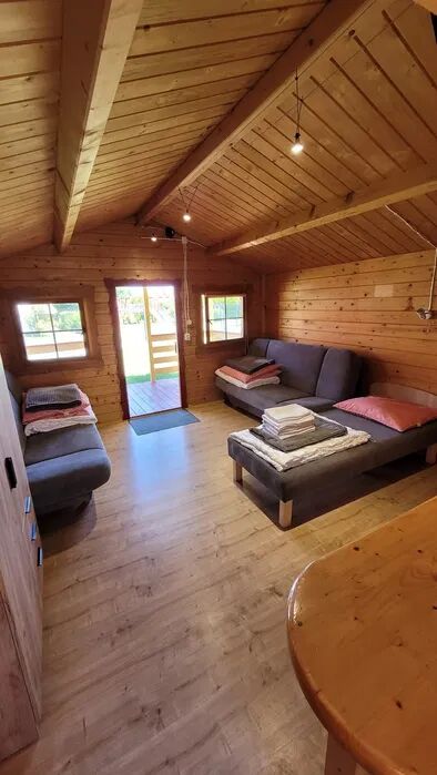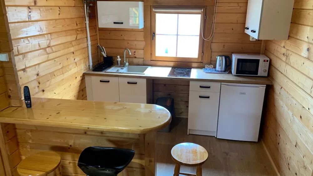 Do dyspozycji Gości oddajemy cztery komfortowe, parterowe domki przeznaczone dla 4–5 osób. Każdy domek składa się z przestronnego pokoju z aneksem kuchennym oraz prywatnej łazienki. W części wypoczynkowej znajdują się dwie rozkładane, dwuosobowe kanapy oraz jednoosobowy tapczan, a także telewizor 40” i pojemna szafa. W cenie pobytu zapewniamy świeżą, białą pościel z bawełny satynowej – prosimy jedynie o zabranie własnych ręczników.