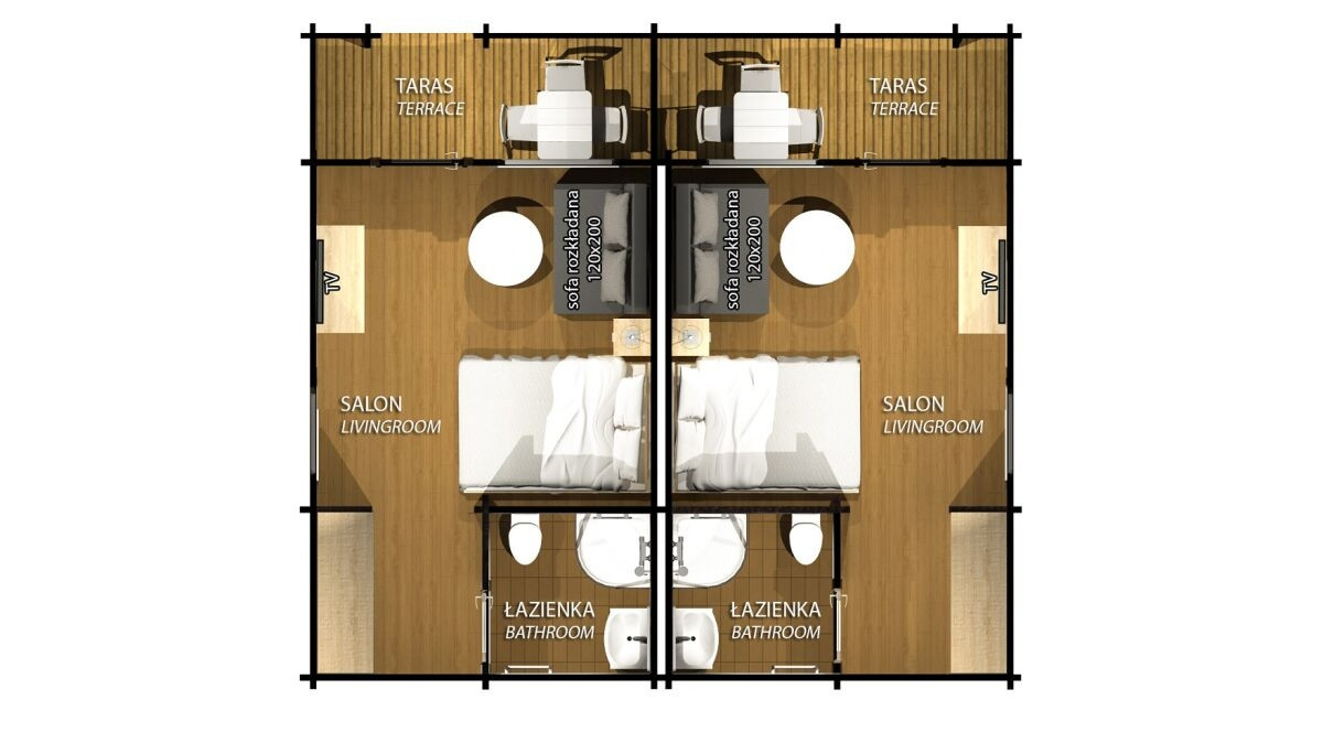Liczba osób w domkach nie może zostać przekroczona. Do maksymalnej liczby osób wlicza się wszystkie osoby, także dzieci do 1 roku życia. Z uwagi na metraż domku oraz komfort naszych gości, domek Bliźniak rekomendujemy dla dwóch osób dorosłych i dwojga małych dzieci w wieku 1-12 lat.