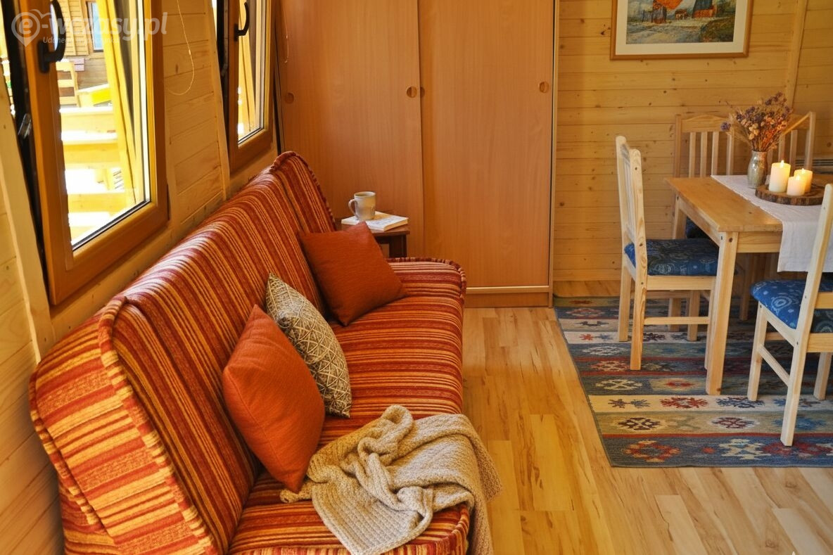 Komfortowe Domki : W pełni wyposażone z aneksem kuchennym i prywatnym tarasem