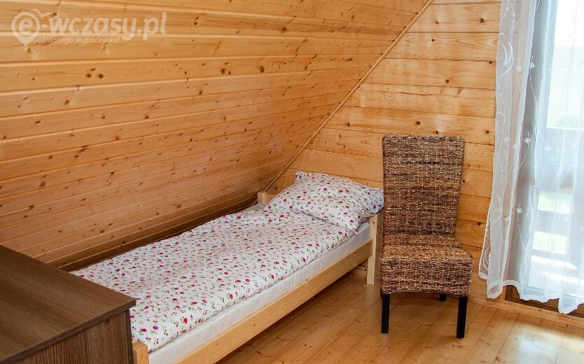 - W jego skład wchodzi piętro z sypialnią i łóżkiem małżeńskim dla rodziców, dodatkowo dwa pojedyncze łóżka, szafa i komoda na ubrania i bagaże oraz szafki nocne.