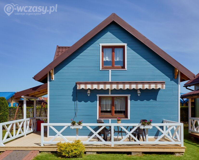 Każdy domek wyposażony jest w grill i sprzęt plażowy (leżak, parawan i koc). Domek posiada dwa zadaszone tarasy - na dole - gdzie znajduje się drewniany komplet ogrodowy, oraz na górze - gdzie można podziwiać okolice.