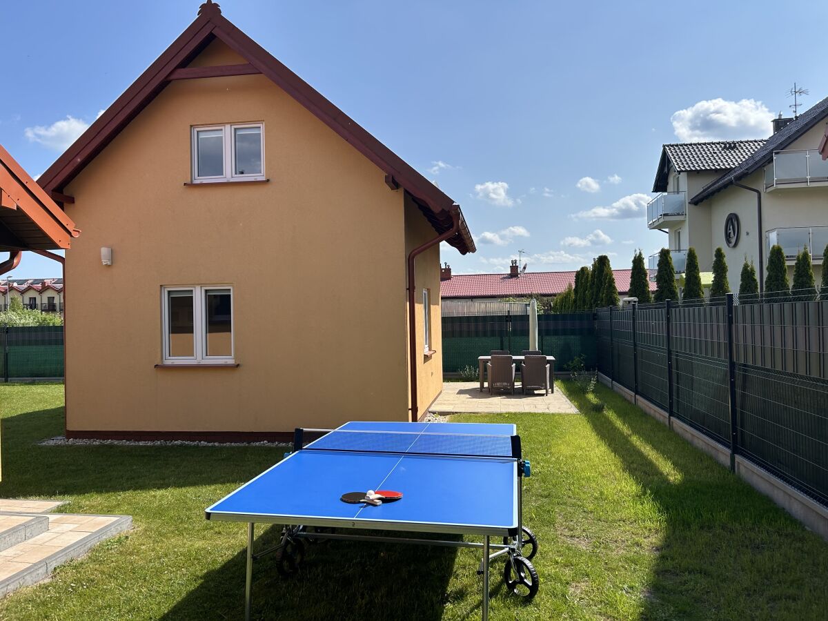 Altana ogrodowa, stół do ping-ponga (na zewnątrz), piłkarzyki, huśtawki, różne gry ogrodowe, leżaki oraz grill do dyspozycji.