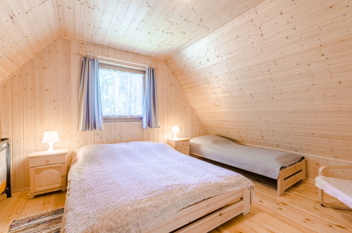 Sypialnie: dwie zamykane sypialnie na piętrze, komfortowe łóżka (160x200, 140x200, 90x200) oraz łóżeczko dziecięce. Na piętrze znajduje się dodatkowe WC oddzielające sypialnie.
