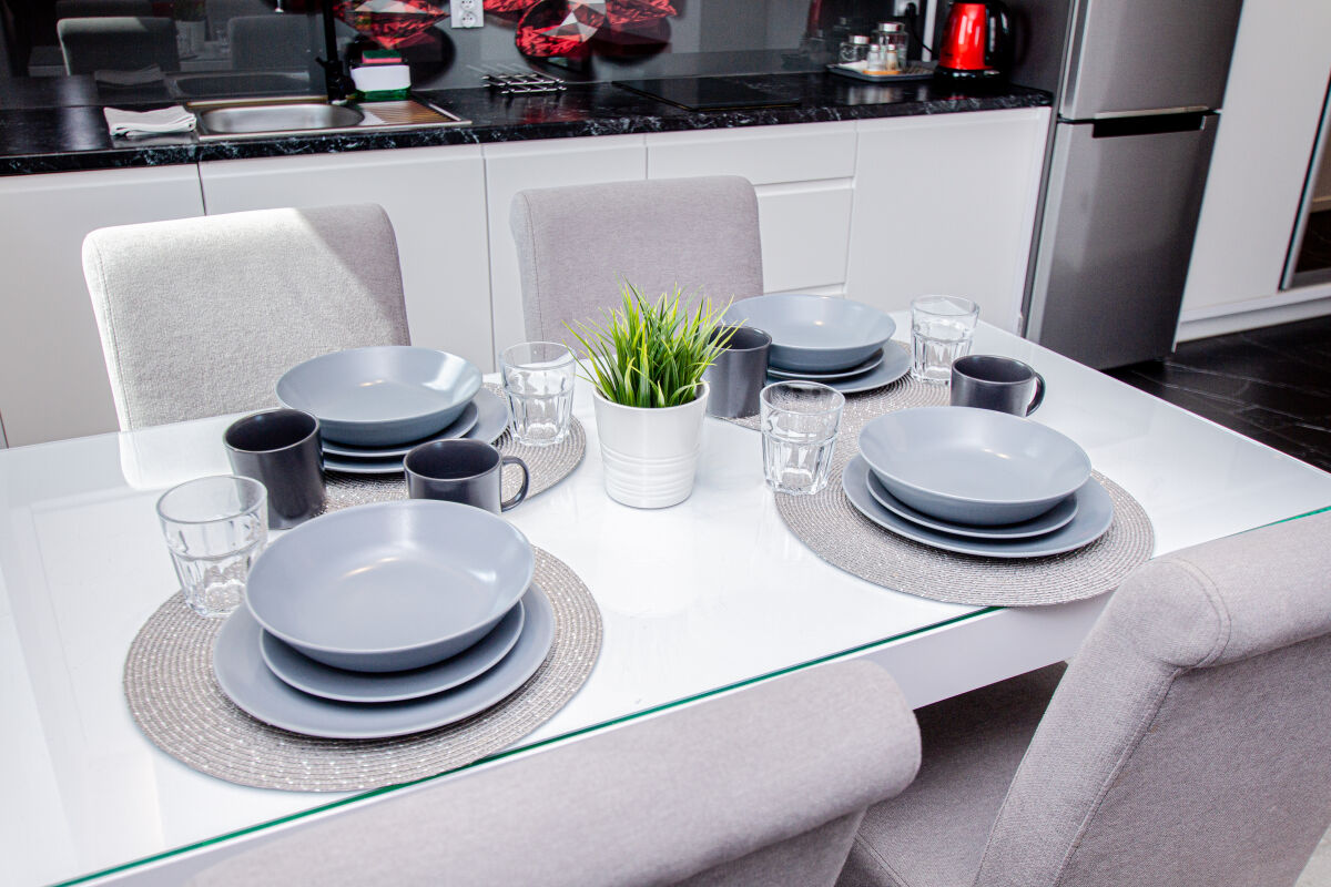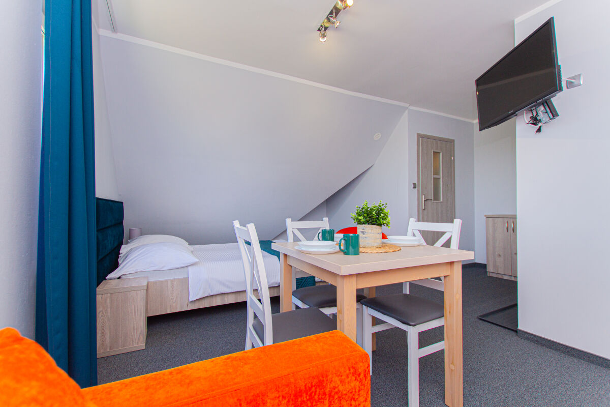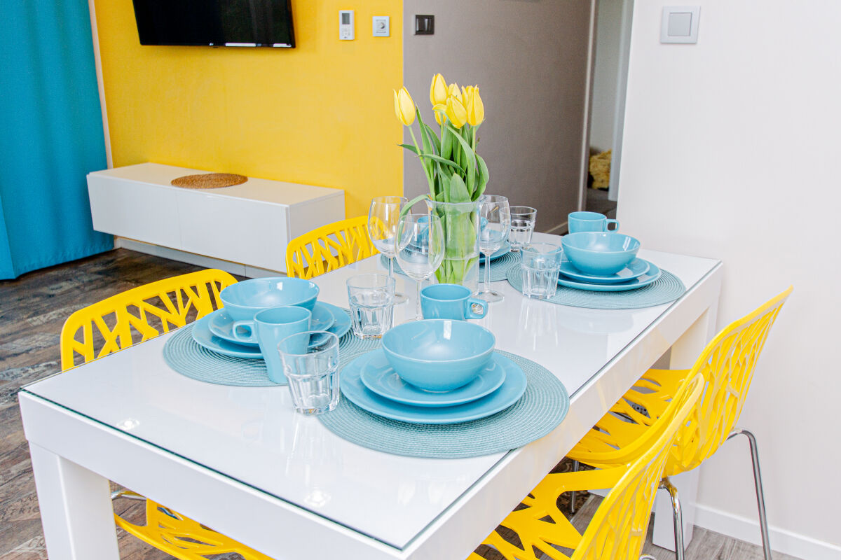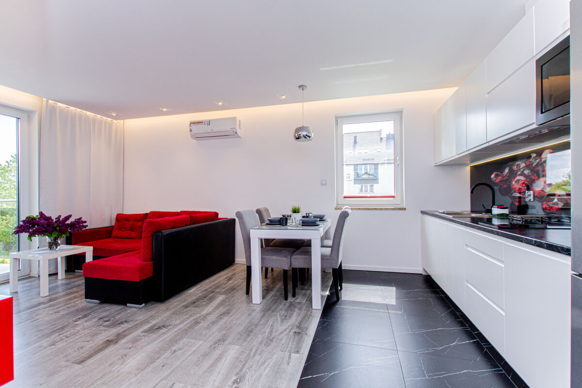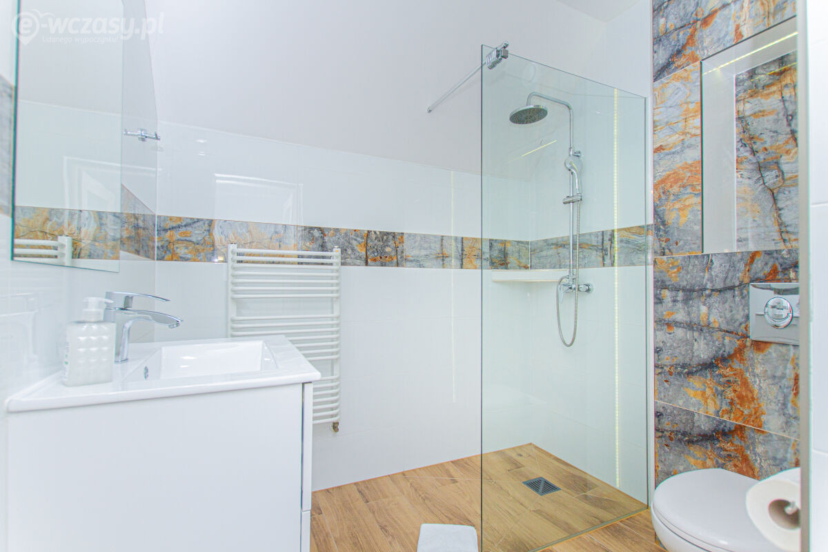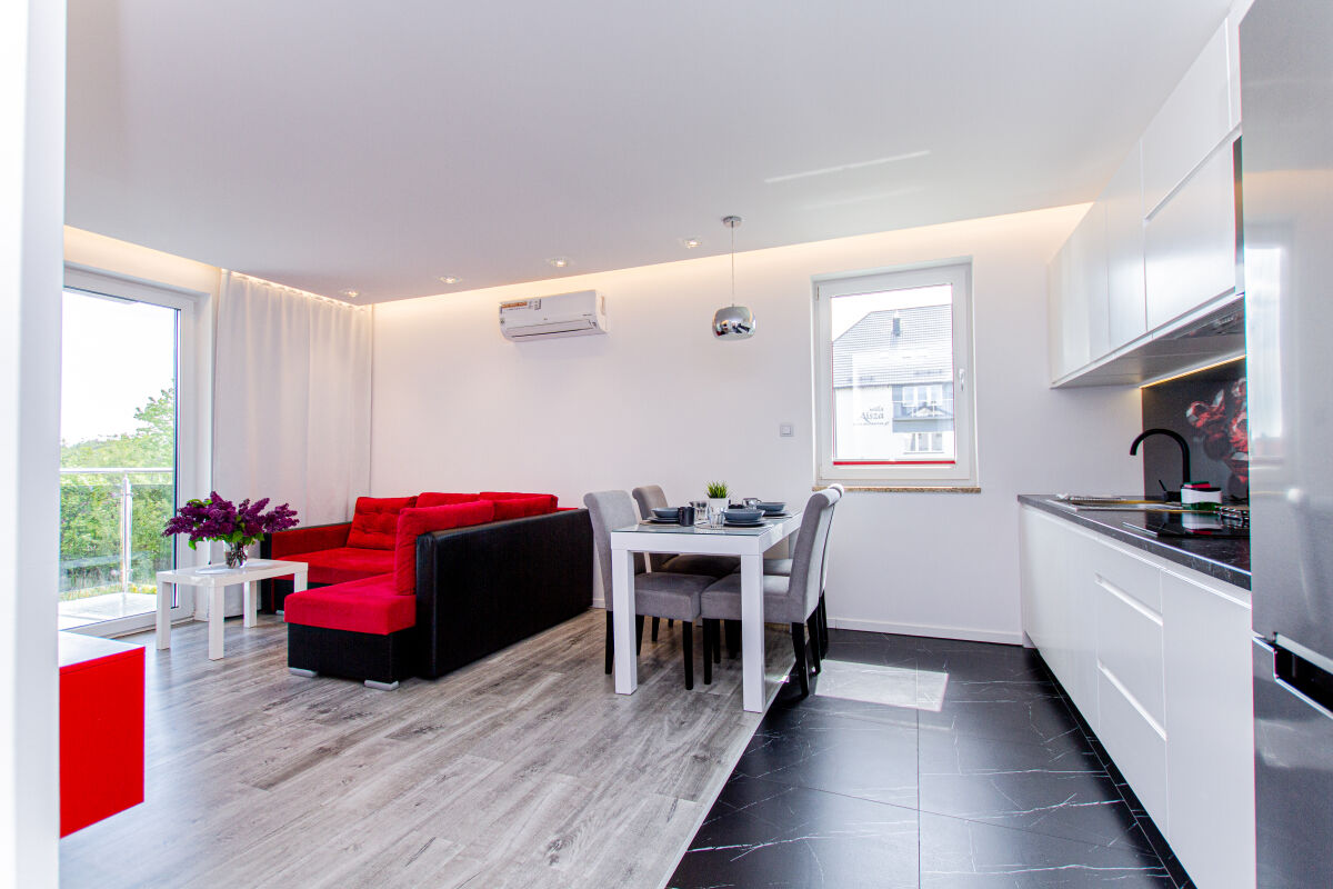 Apartamenty urządzone tematycznie ,każdy o pow. 44 m/kw , każdy,2 pokojowy - 3/5 os z kuchnią wyposażona; w lodówke z zamrażarką , czajnik, naczynia ,płyta indukcyjna , garnki , mikrofala , zmywarka + kapsułki ,w salonie rozkładany narożnik z możliwością spania, tv z smart , oddzielna sypialnia ,w którejznajduje sięłoże małżeńskie 160 cm z możliwością oddzielnego spania dla dzieci + fotel rozkładany ; łazienka : na wyposażeniu ręczniki mydło ,suszarka , deska do prasowania, suszarka na pranie , parawan , koc , leżaki na plaże , balkon -krzesła+ stolik ; w wybranych apartamentach klimatyzacja.