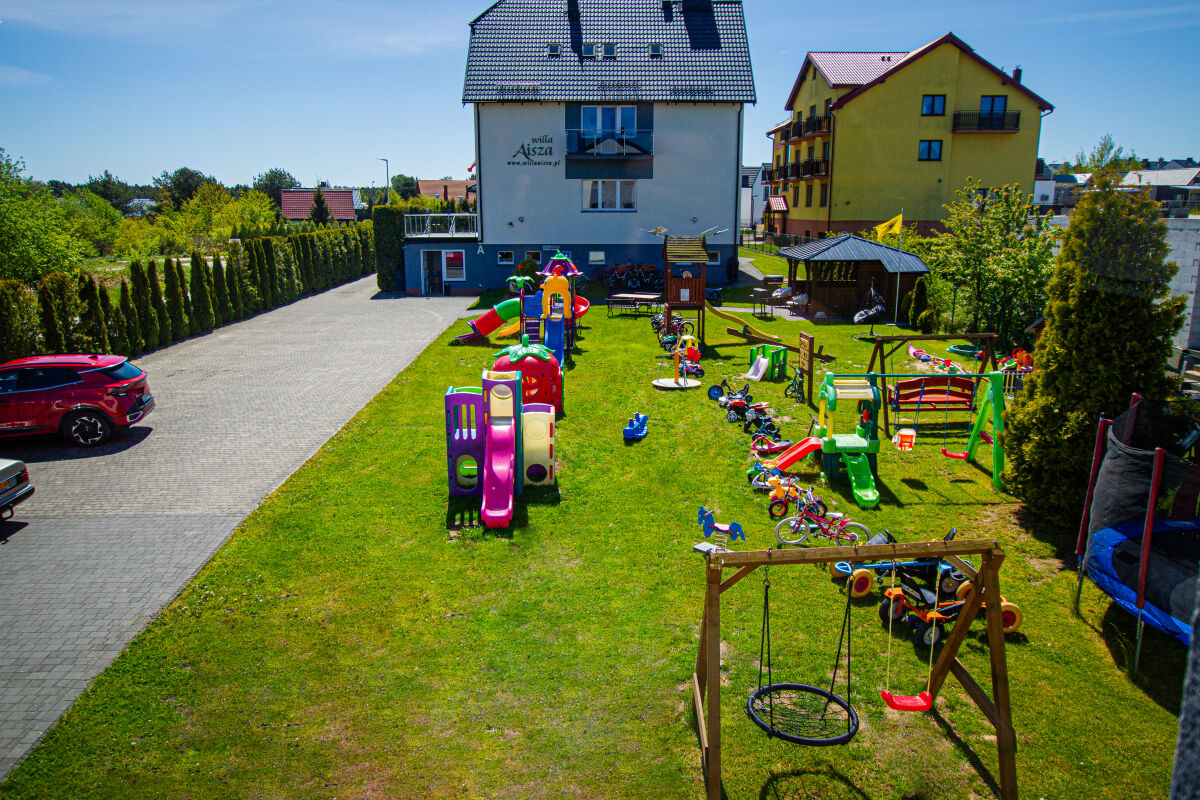 Na posesji po między budynkami znajduje się duuuuży plac zabaw z dużą trampoliną z huśtawką piaskownicą z potrzebnymi akcesoriami ,bujaki hamak, domek drewniany dla dzieci ,zjeżdżalnia ,most , ściana wspinaczkowa ,karuzela , gokardy ,rowerki , hulajnogi , traktorki ,cabriolet , pojazd grafitacyjny , bongo ,...itp. to wszystko ,aby Państwa pociechy się u nas nie nudziły , a dla Państwa Altana do grillowania dla miłego spędzenia popołudnia