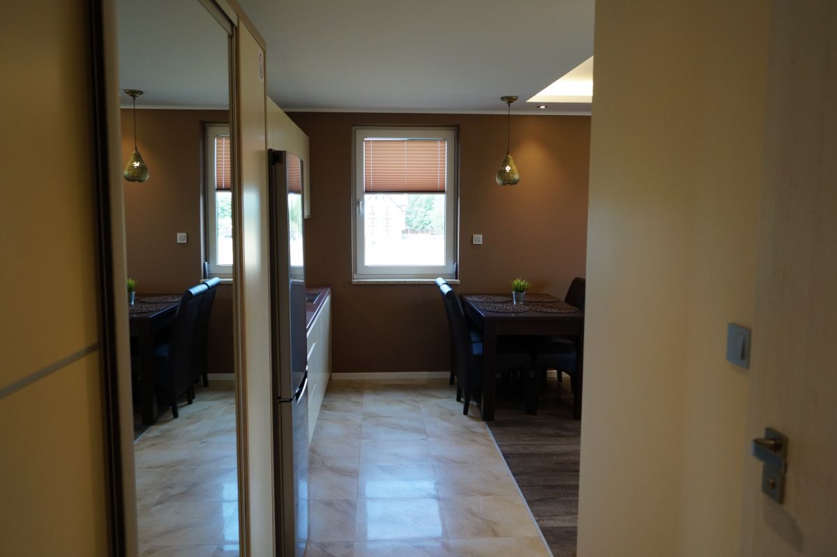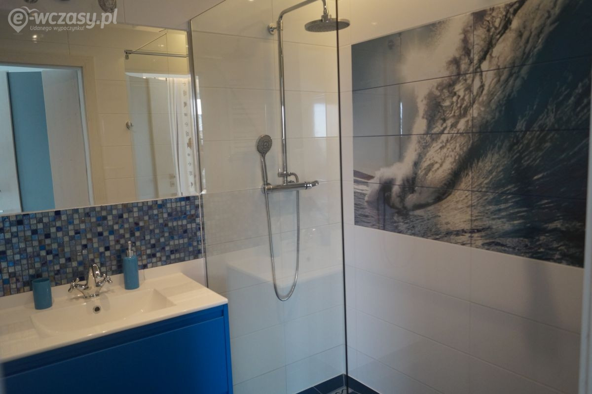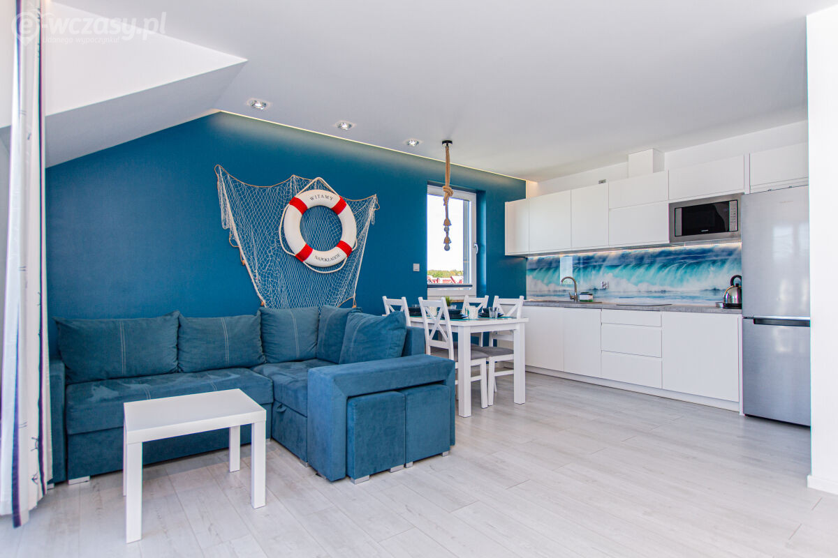 Apartamenty urządzone tematycznie ,każdy o pow. 44 m/kw , każdy,2 pokojowy - 3/5 os z kuchnią wyposażona; w lodówke z zamrażarką , czajnik, naczynia ,płyta indukcyjna , garnki , mikrofala , zmywarka + kapsułki ,w salonie rozkładany narożnik z możliwością spania, tv z smart , oddzielna sypialnia ,w którejznajduje sięłoże małżeńskie 160 cm z możliwością oddzielnego spania dla dzieci + fotel rozkładany ; łazienka : na wyposażeniu ręczniki mydło ,suszarka , deska do prasowania, suszarka na pranie , parawan , koc , leżaki na plaże , balkon -krzesła+ stolik ; w wybranych apartamentach klimatyzacja.
