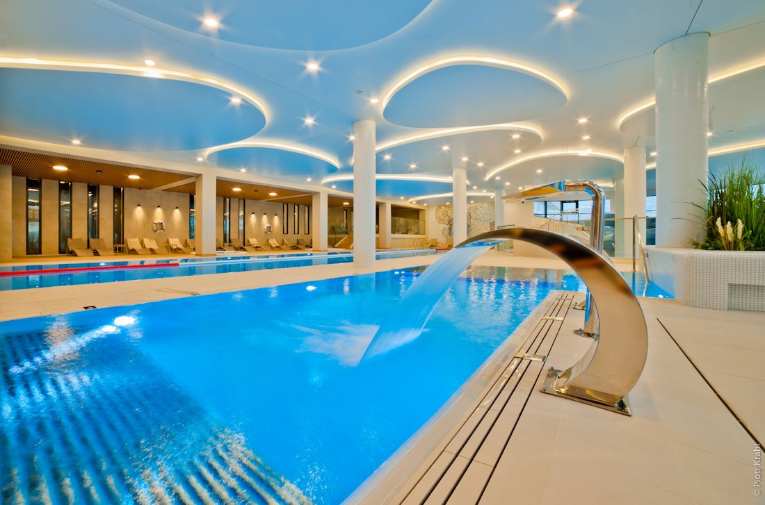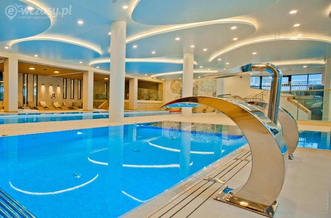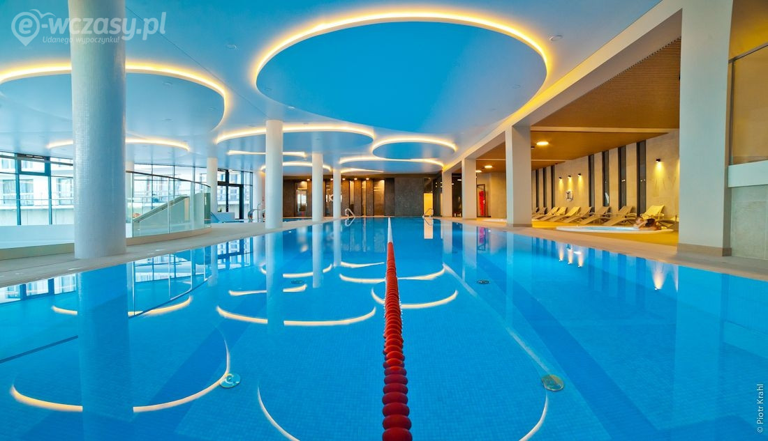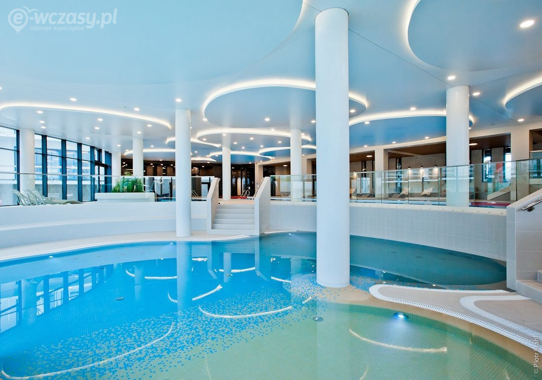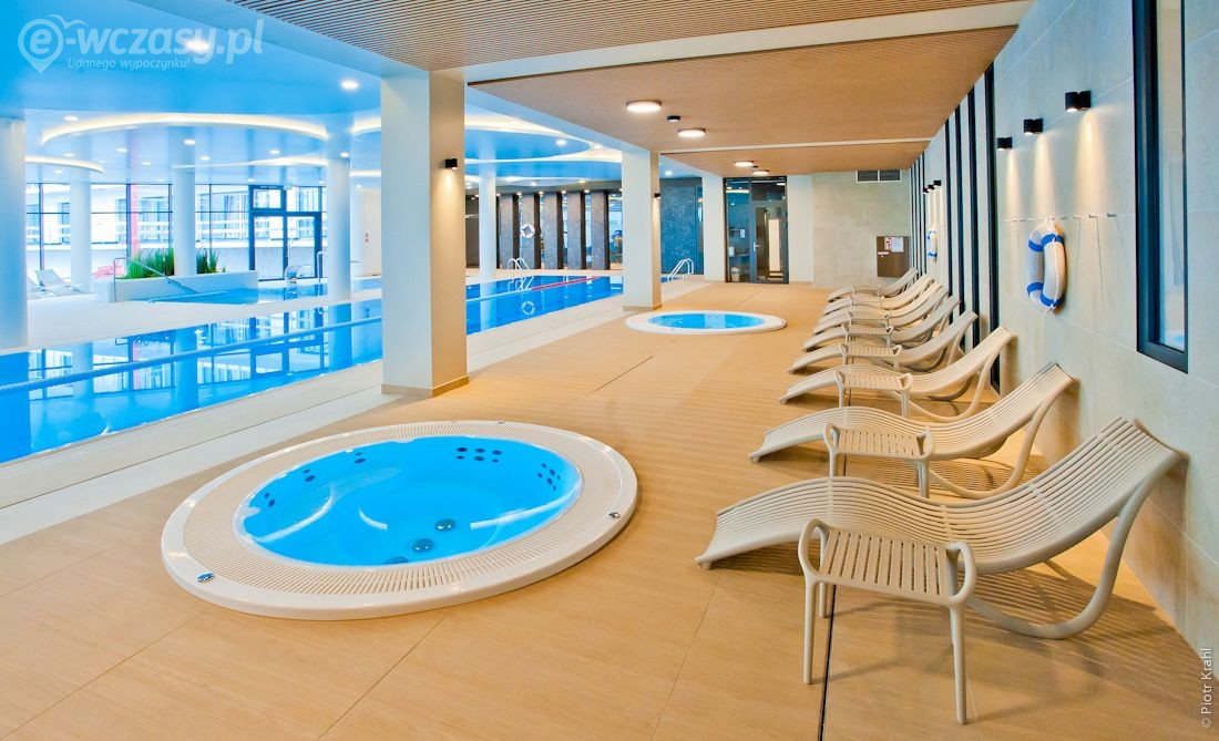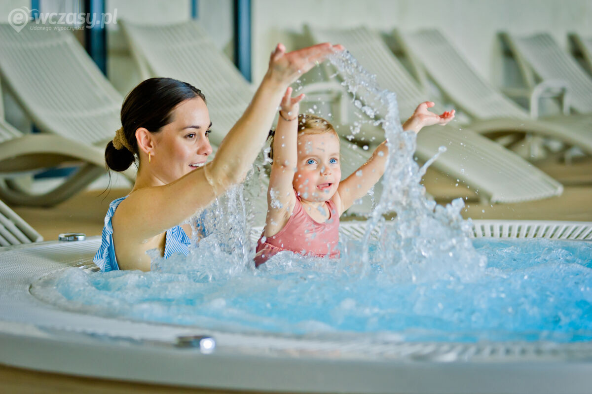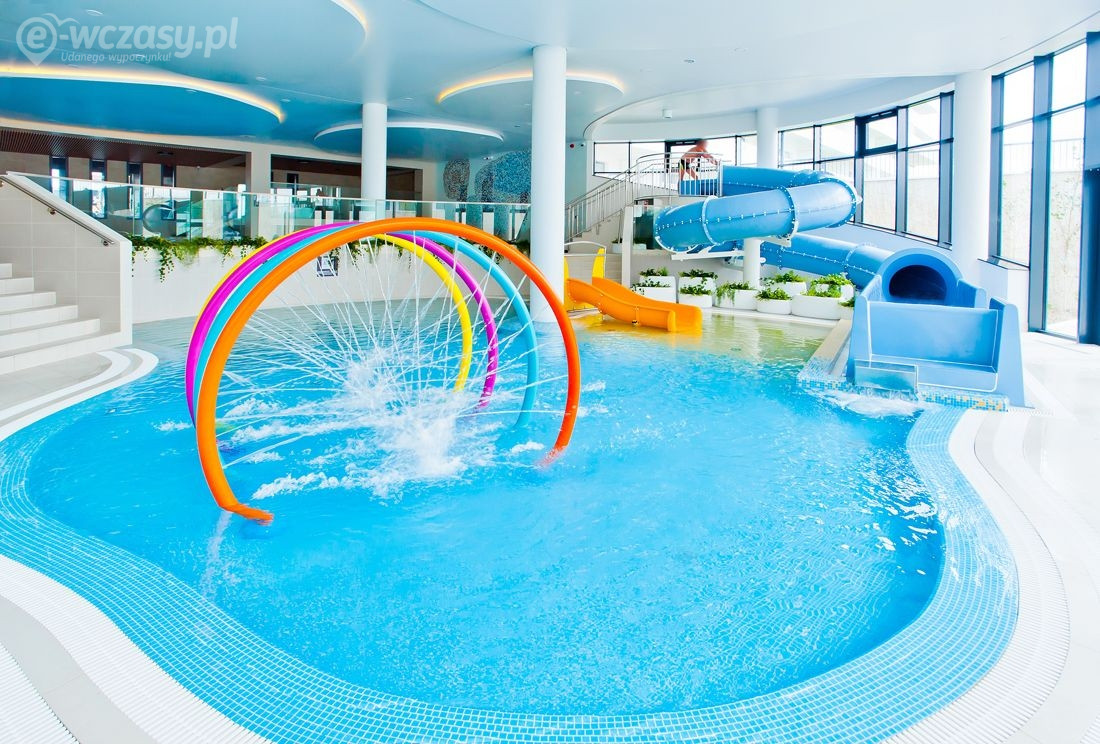 - całoroczna strefa basenowa: jacuzzi, leżaki, bicze wodne, gejzery, baseny wewnętrzne, rynna wodna, wodny plac zabaw dla dzieci, duży plac zabaw.