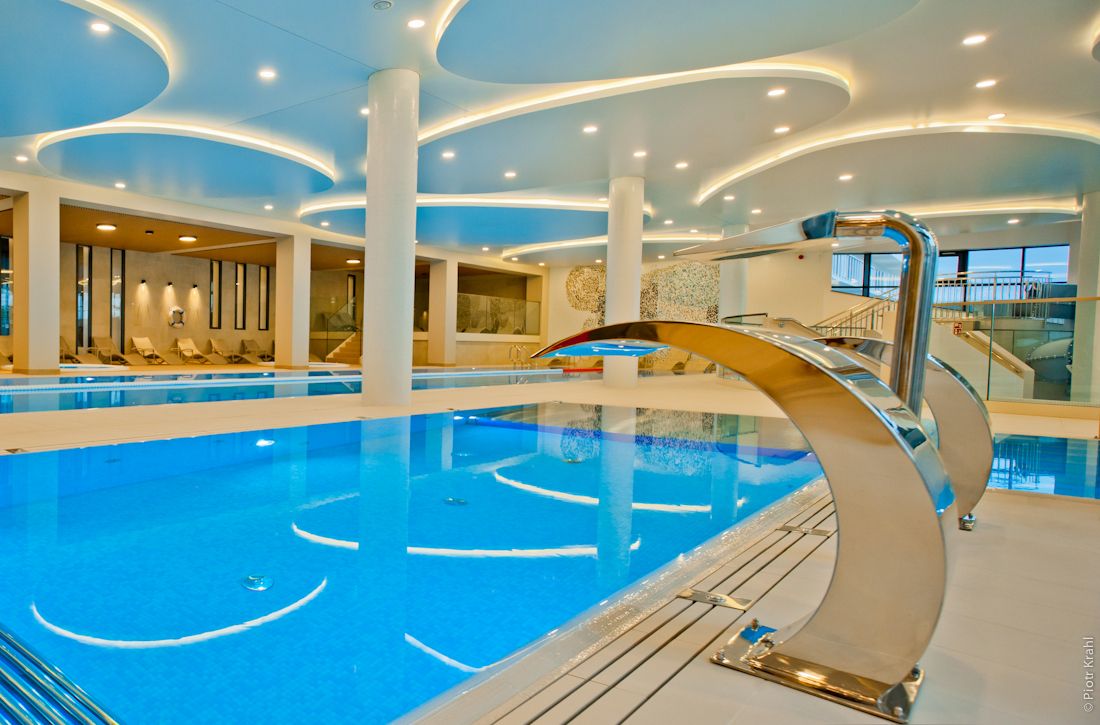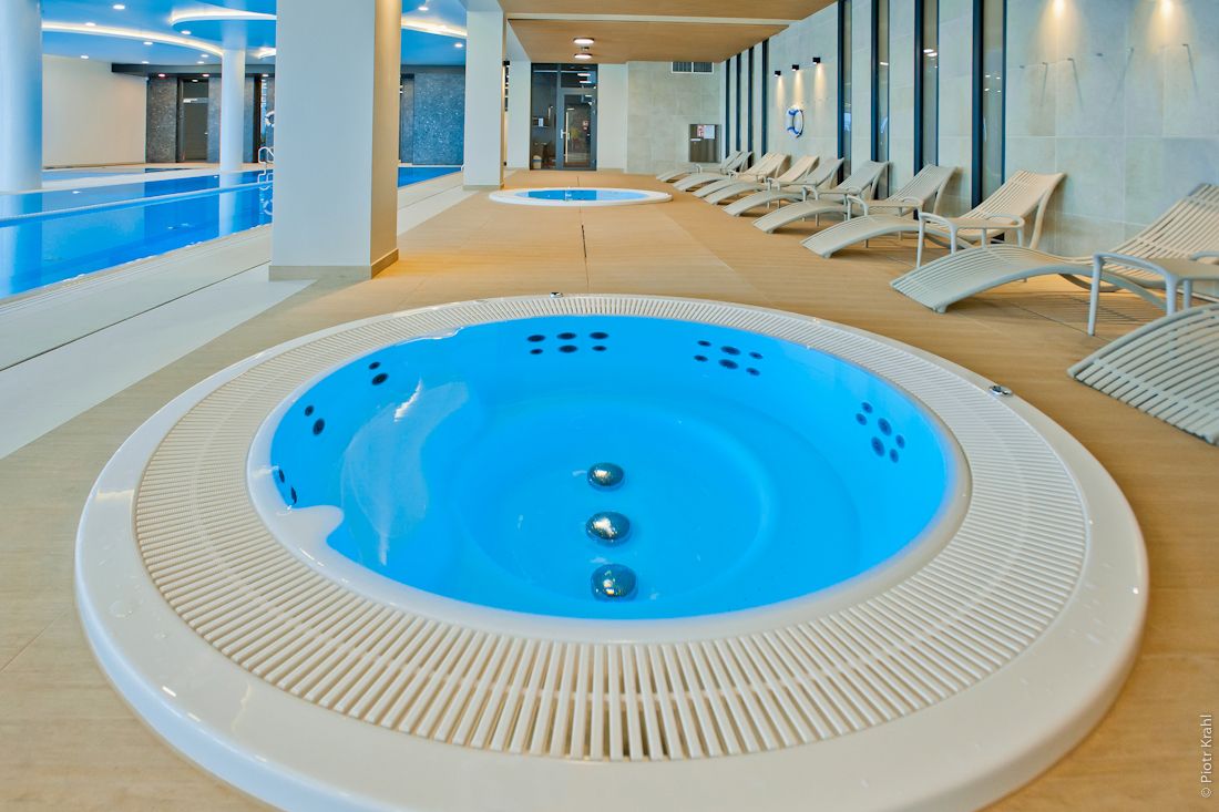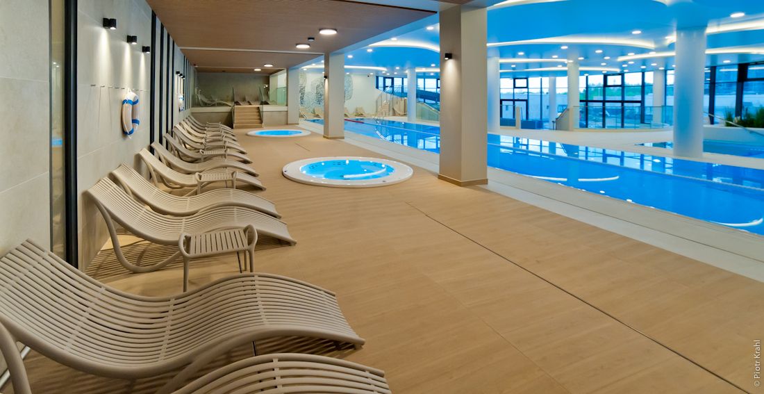 - całoroczna strefa basenowa: jacuzzi, leżaki, bicze wodne, gejzery, baseny wewnętrzne, rynna wodna, wodny plac zabaw dla dzieci, duży plac zabaw.