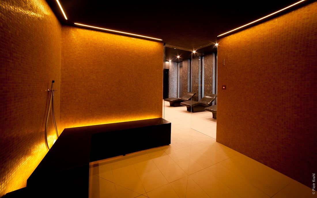 - strefy wewnętrznej saun: sauny suchej, parowej, ciepłe kamienne leżaki