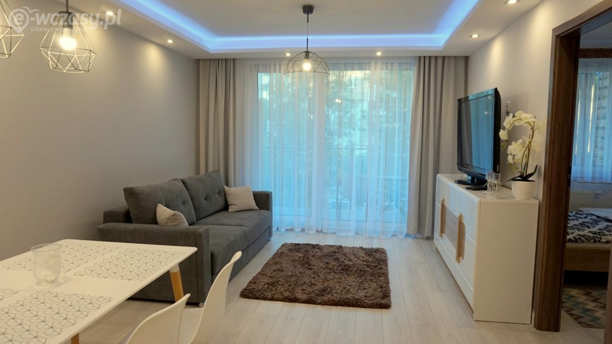Apartamenty w Kołobrzegu. Każdy z apartamentów wyposażony jest w aneks kuchenny z lodówką, kuchenkę mikrofalową, elektryczny czajnik, w większości elektryczną płytę kuchenną. W niektórych ekspres do kawy, zmywarka do naczyń. Na wyposażeniu znajduje się TV, radio, żelazko, deska do prasowania, pościel i ręczniki. Większość apartamentów posiada pralkę. Możliwość zakwaterowania od 1 do 5 osób lub w jednym do 6 osób ( włącznie z dziećmi). W sezonie wakacyjnym wynajmujemy apartamenty na pobyty minimum 5 noclegów, poza sezonem od 2 noclegów Wynajem przez cały rok.