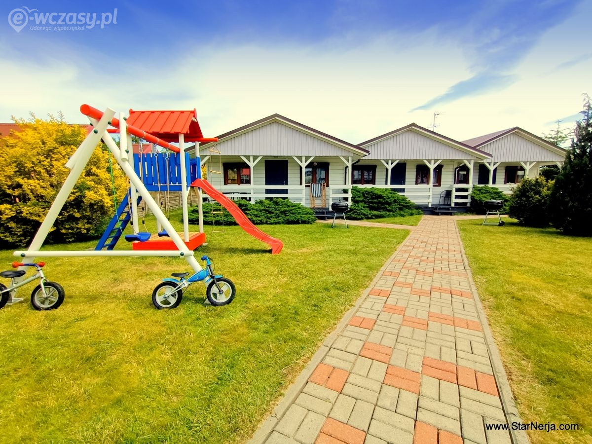 8. Domki letniskowe NORD-STAR-Sarbinowo. Kompleks sezonowych domków letniskowych ( sezon od 28.04. do 30.09.) usytuowanych 350m od plaży w Sarbinowie, blisko centrum, sklepów i restauracji. Każdy z jednakowych, parterowych 6 domków posiada 2 sypialnie 2 osobowe w jednej sypialni lóżko małżeńskie w drugiej 2 łóżka jednoosobowe. POkój dzienny z rozkładaną sofą 2 osobową, telewizor, szafki. Aneks kuchenny z elektryczną płyta grzewczą, lodówka, czajnik elektryczny, garnki, naczynia. Łazienka z kabiną prysznica, WC, umywalka. Duzy taras z meblami, zadaszony. Prywatny gril przy każdym domku. Na ogrodzonej posesji plac zabaw dla dzieci oraz miejsca parkingowe (1 miejsce dla 1 domku). Możliwość zakwaterowania w jednym domku od 2 do 6 osób ( włącznie z dziećmi) W sezonie wakacyjnym wynajmujemy na pobyty tygodniowe, przyjazdy i wyjazdy w soboty lub w niedziele. Zwierzęta domowe, psy, akceptowane, obowiązuje dodatkowa oplata.