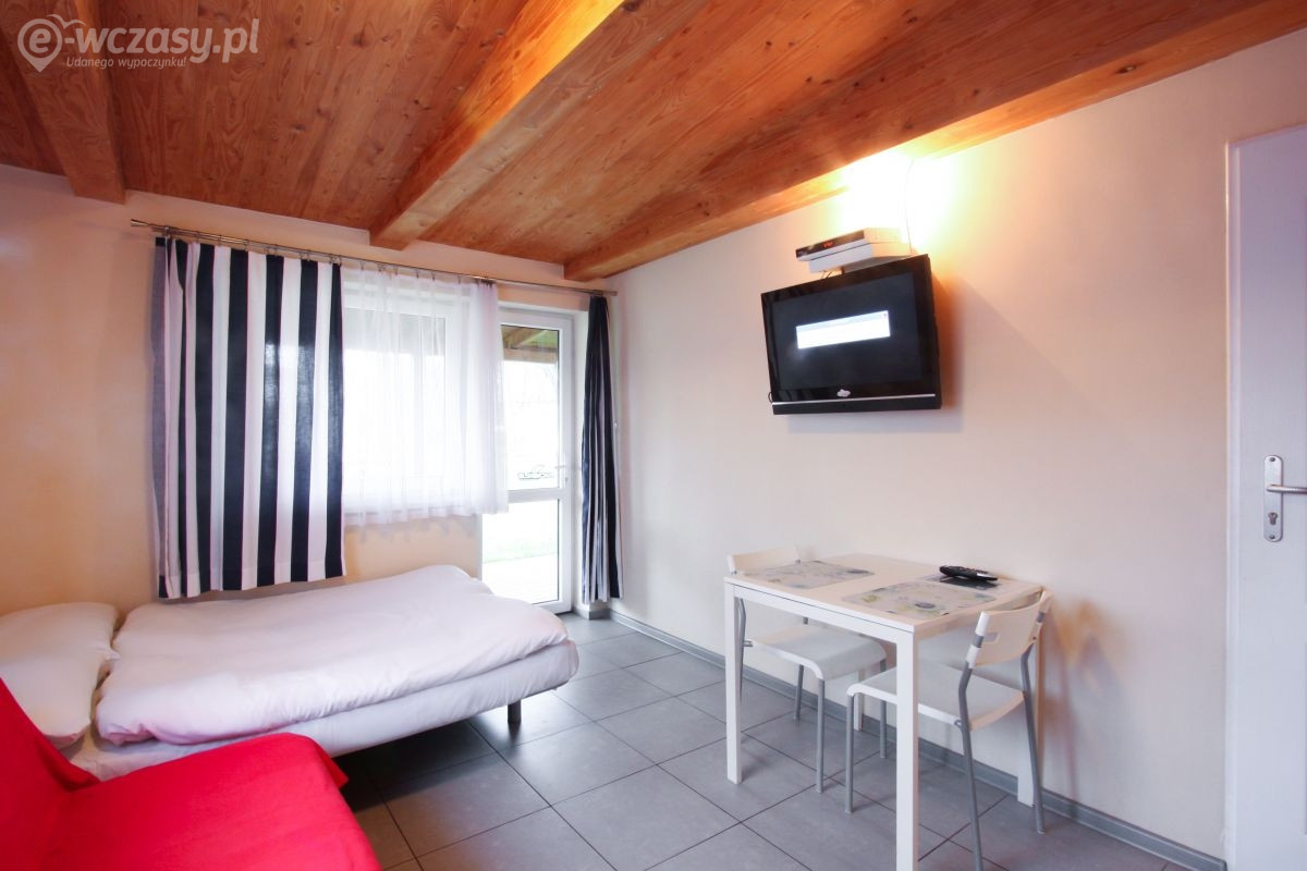 Dwupokojowe domki do 6 osób. Każdy domek posiada aneks kuchenny taras a przed domkiem dużo przestrzeni do grillowanie i odpoczywania.
